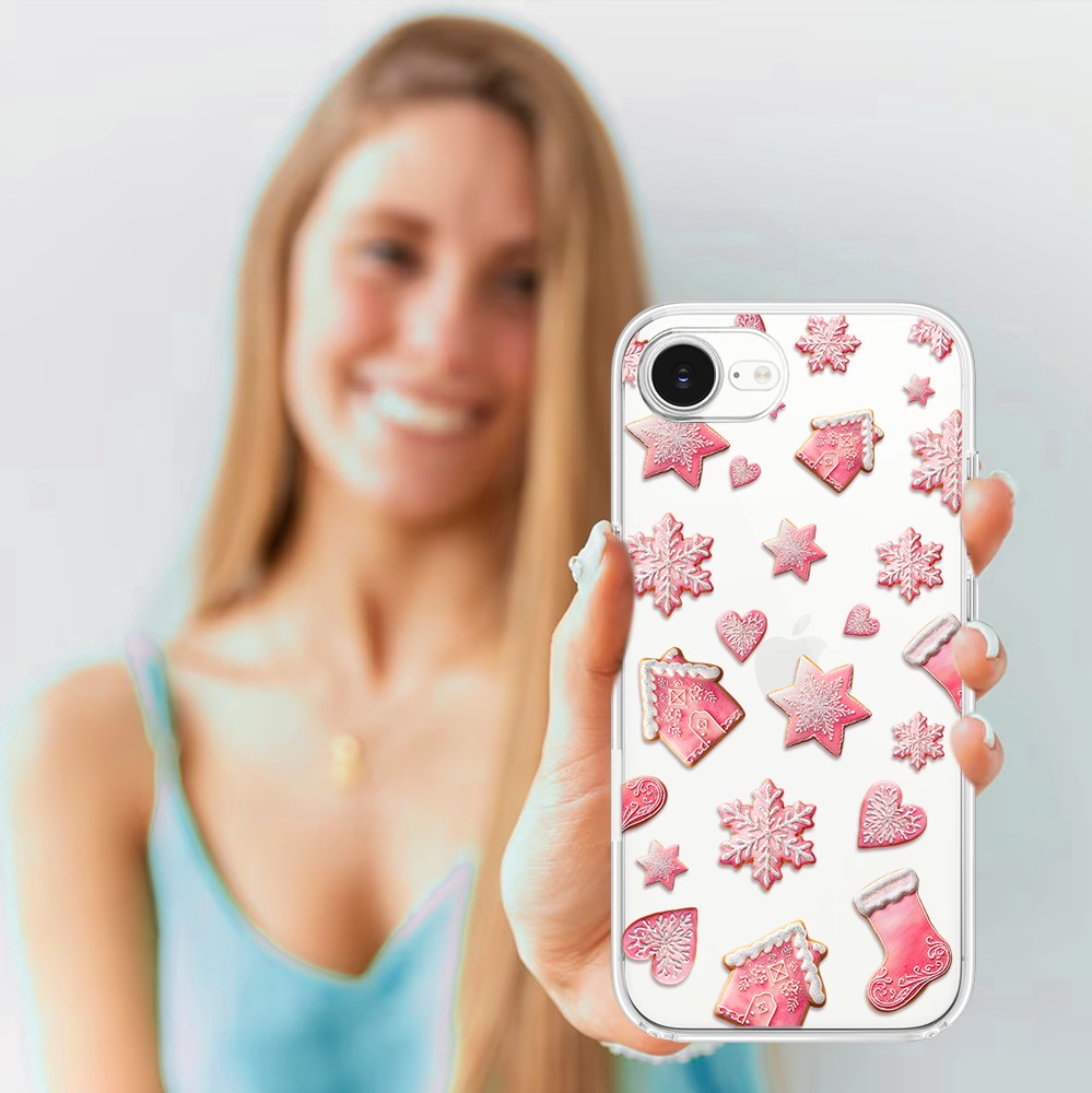 Etui do iPhone 16e, Przytulne święta, Różowe pierniczki, przeźroczyste (6)