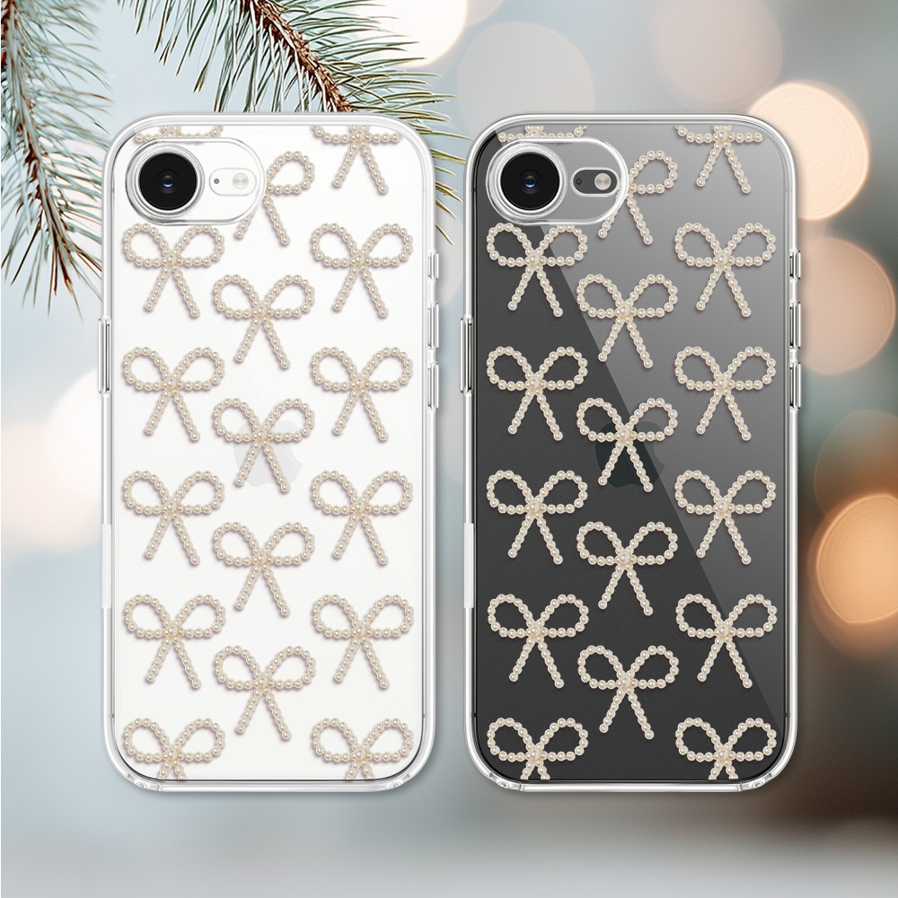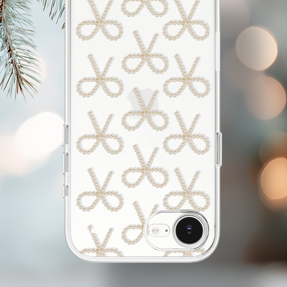 Etui do iPhone 16e, Przytulne święta, Złote kokardki, przeźroczyste (2)