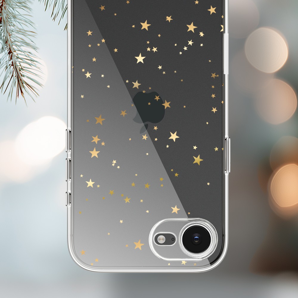 Etui do iPhone 16e, Zimowa Magia, Złote gwiazdki, przeźroczyste (2)
