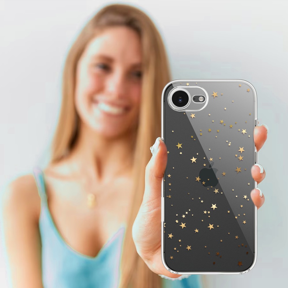 Etui do iPhone 16e, Zimowa Magia, Złote gwiazdki, przeźroczyste (4)