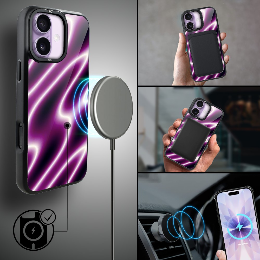 Etui do iPhone 17 BIZU DropGuard Matt z MagSafe, Twilight Dreams, Neonowa fala7