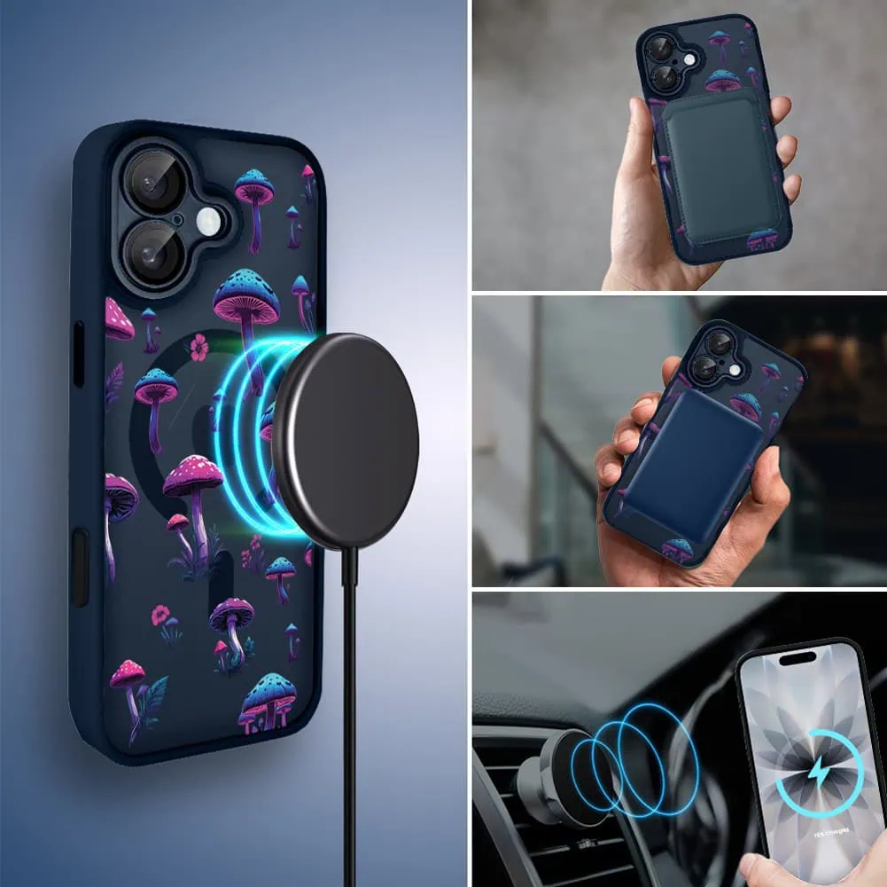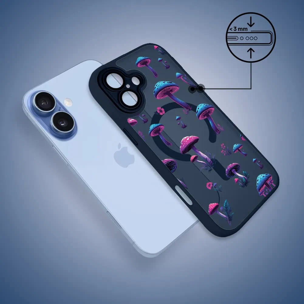 Etui do iPhone 17 Color Flush z MagSafe, z osłoną aparatu, magiczne grzybki, granatowe