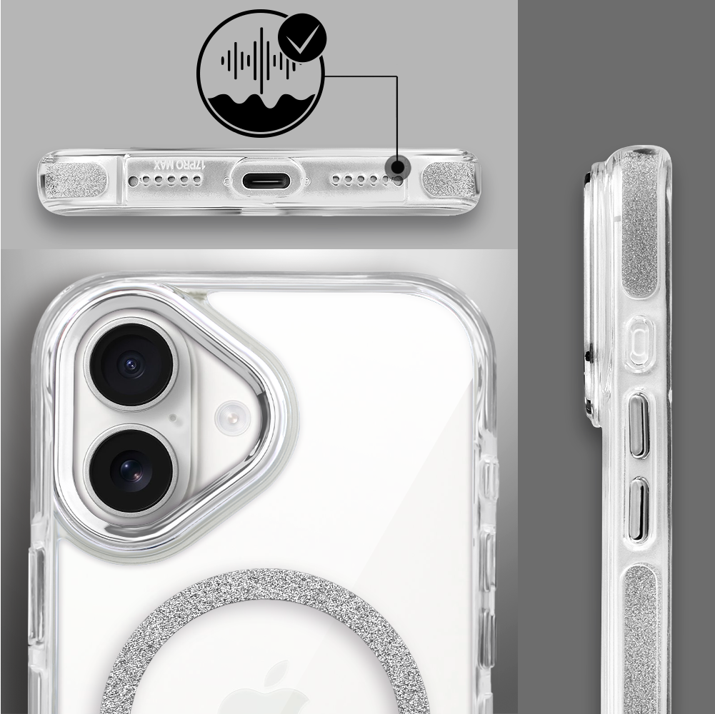 Minimalistyczne i solidne etui na telefon z nutką elegancji i szaleństwa? To możliwe za sprawą brokatowego tyłu, który sprawia, że obudowa wygląda szykownie w każdych okolicznościach.Wbudowane kryształy brokatu