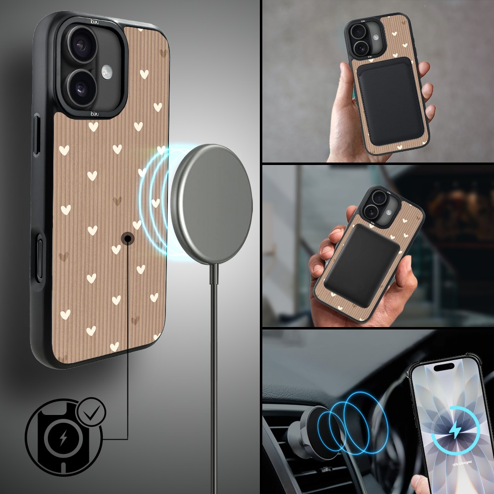 Etui do iPhone 17 IBIZU DropGuard Matt z MagSafe, Boho, Pudrowe serca (2)