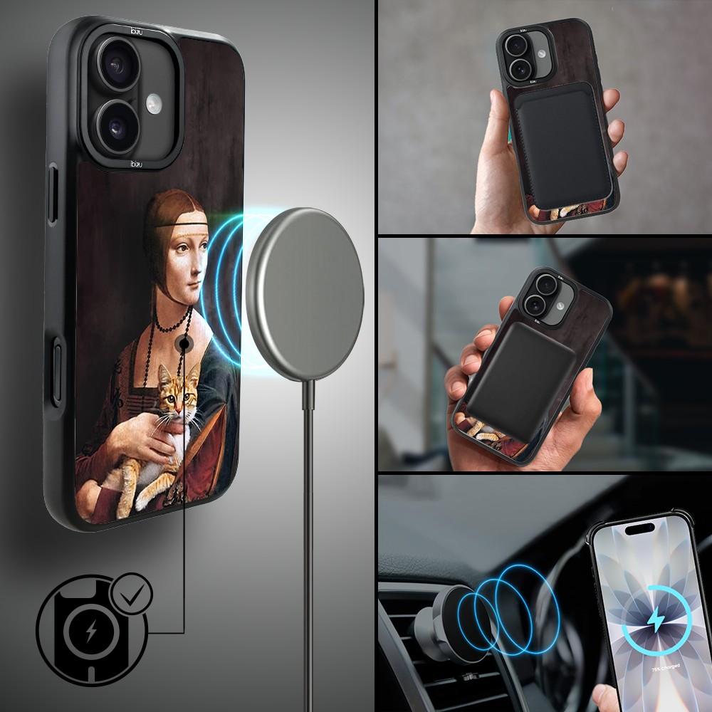 Etui do iPhone 17 IBIZU DropGuard Matt z MagSafe, Leonardo Da Vinci, dama z kotem (4)