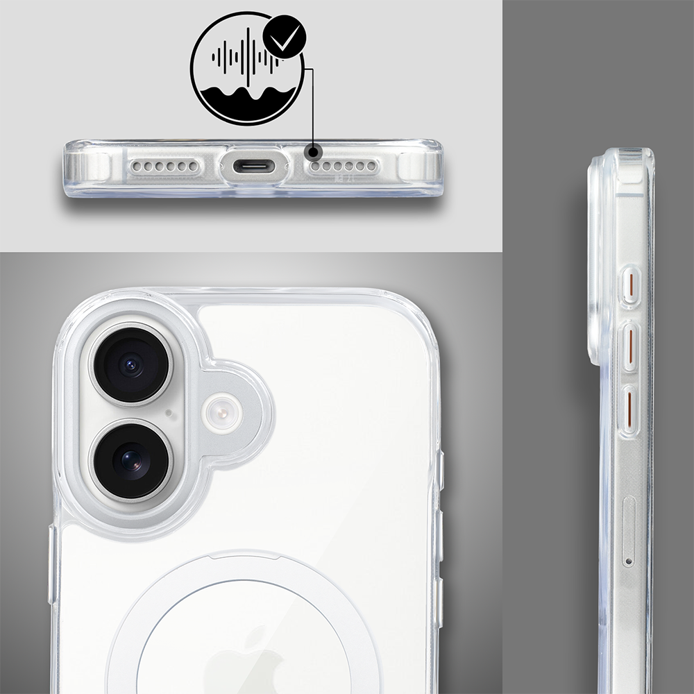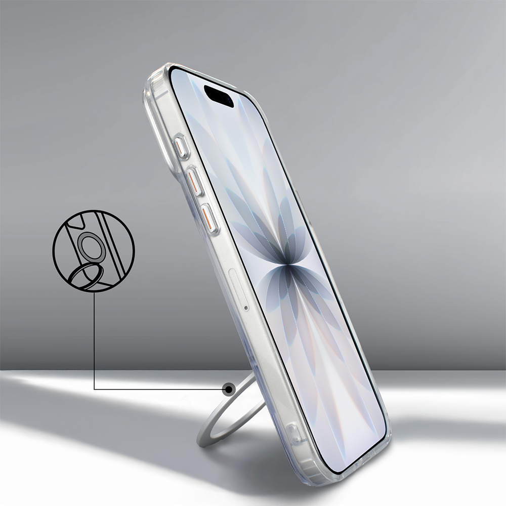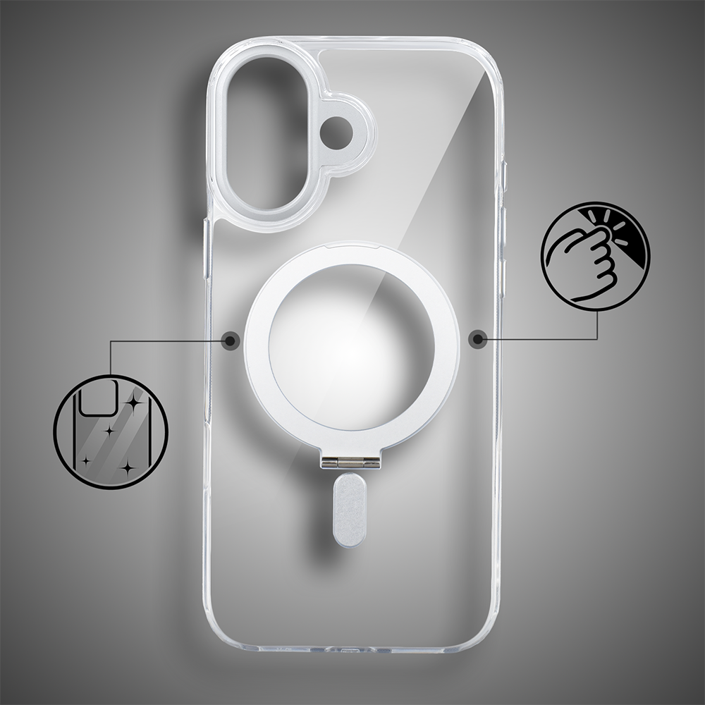 Etui wyposażone jest w metalową podstawkę, co sprawia, że jest kompatybilne z ładowarkami MagSafe. Dzięki temu można łatwo i wygodnie ładować urządzenie, bez potrzeby zdejmowania etui. W związku z zastosowaniem metalowego pierścienia nie wszystkie ładowarki bezprzewodowe będą kompatybilne. Metalowa podstawką zapewnia pewne i stabilne połączenie z ładowarką MagSafe, co gwarantuje szybkie i bezproblemowe ładowanie.Kompatybilne z ładowarkami MagSafe