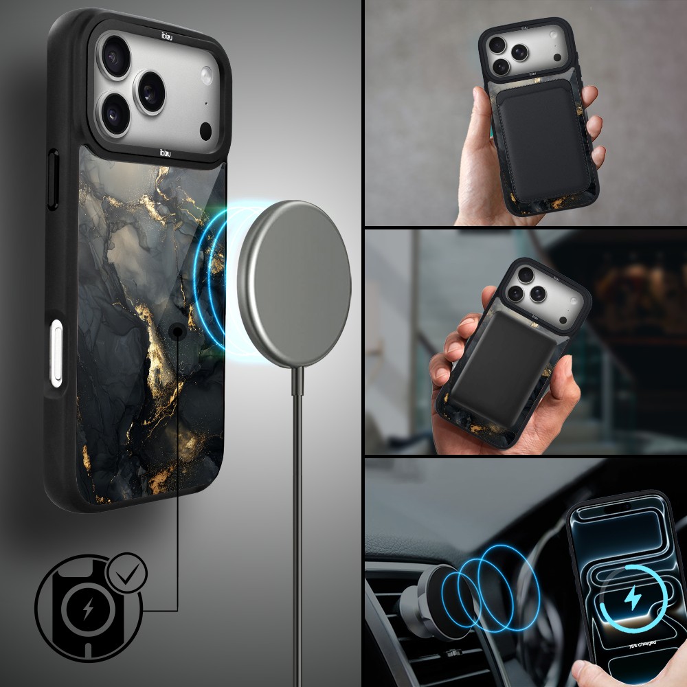Etui do iPhone 17 Pro Max IBIZU DropGuard Matt z MagSafe, Ethereal Essence, Czarny diament ze złotem 17pro_DM-4