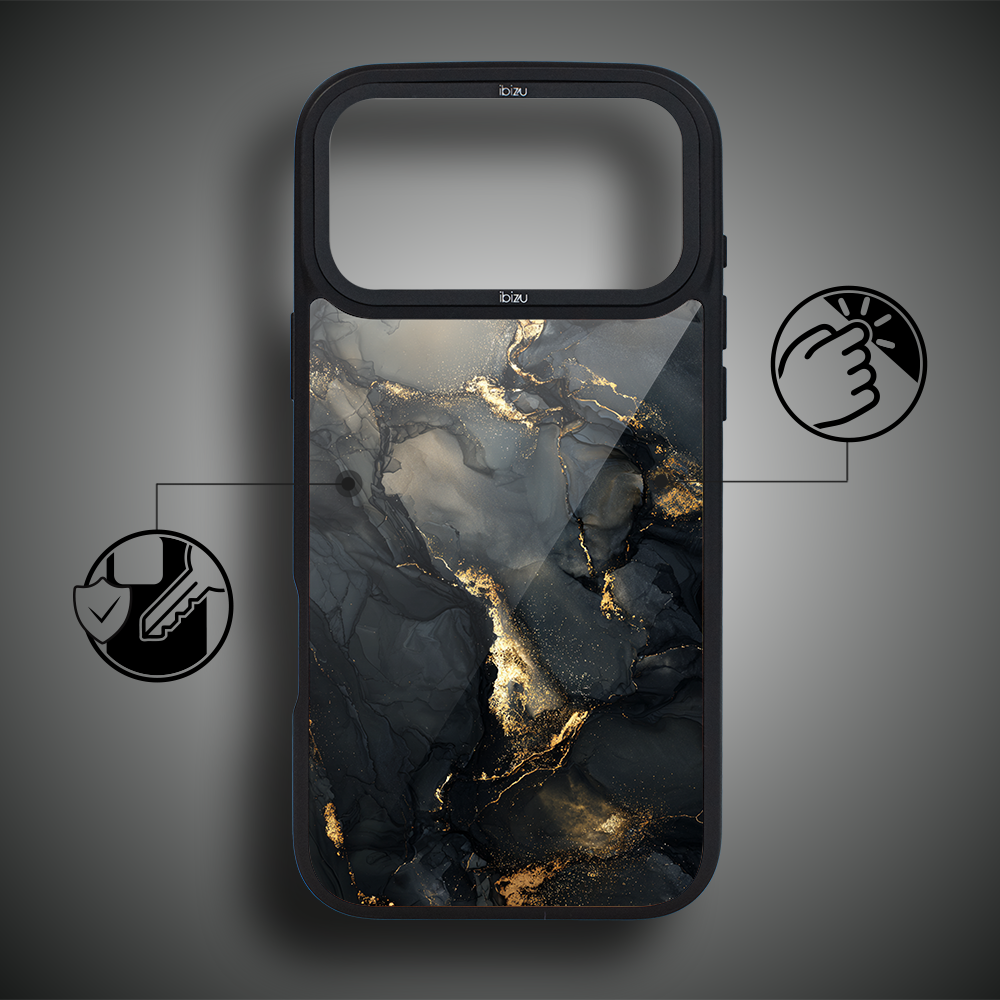 Etui do iPhone 17 Pro Max IBIZU DropGuard Matt z MagSafe, Ethereal Essence, Czarny diament ze złotem 17pro_DM-1