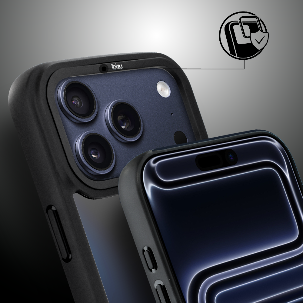 Etui do iPhone 17 Pro Max IBIZU Elite Skin z MagSafe, krystalicznie czyste z metalową ramką, czarne