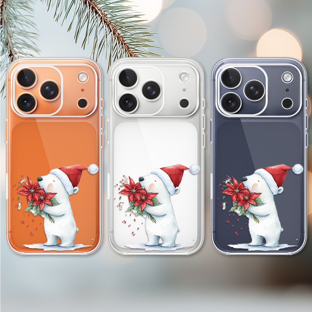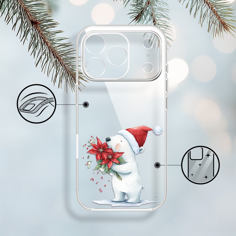 Etui do iPhone 17 Pro Max, Przytulne święta, Miś świąteczny, przeźroczyste1
