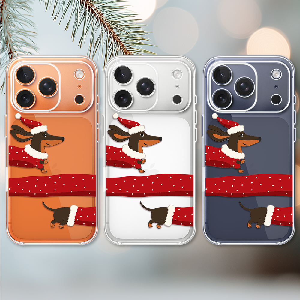 Etuitelefon.pl > Akcesoria do iphone 17 pro max > Etui iphone 17 pro max > Etui do iphone 17 pro max, przytulne święta, Świąteczny jamnik, przeźroczyste