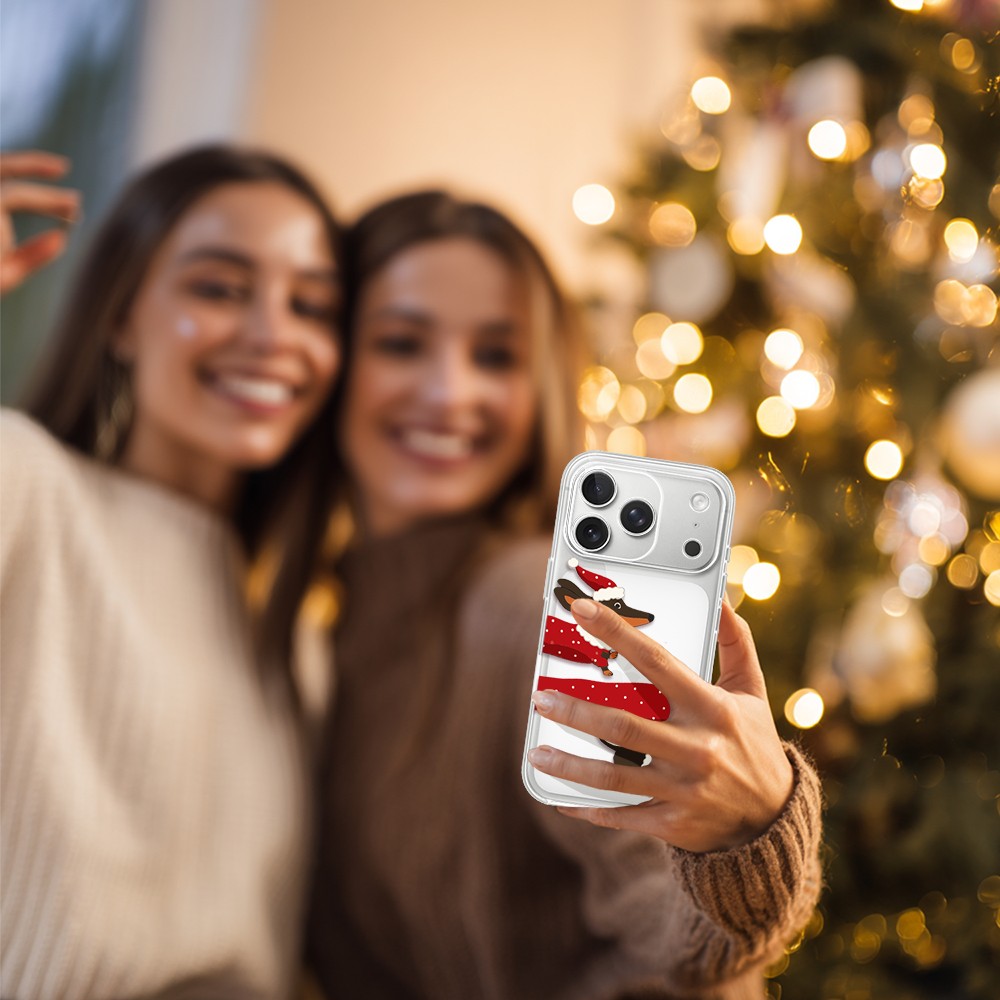 Etui do iPhone 17 Pro Max, Przytulne święta, Świąteczny jamnik, przeźroczyste1