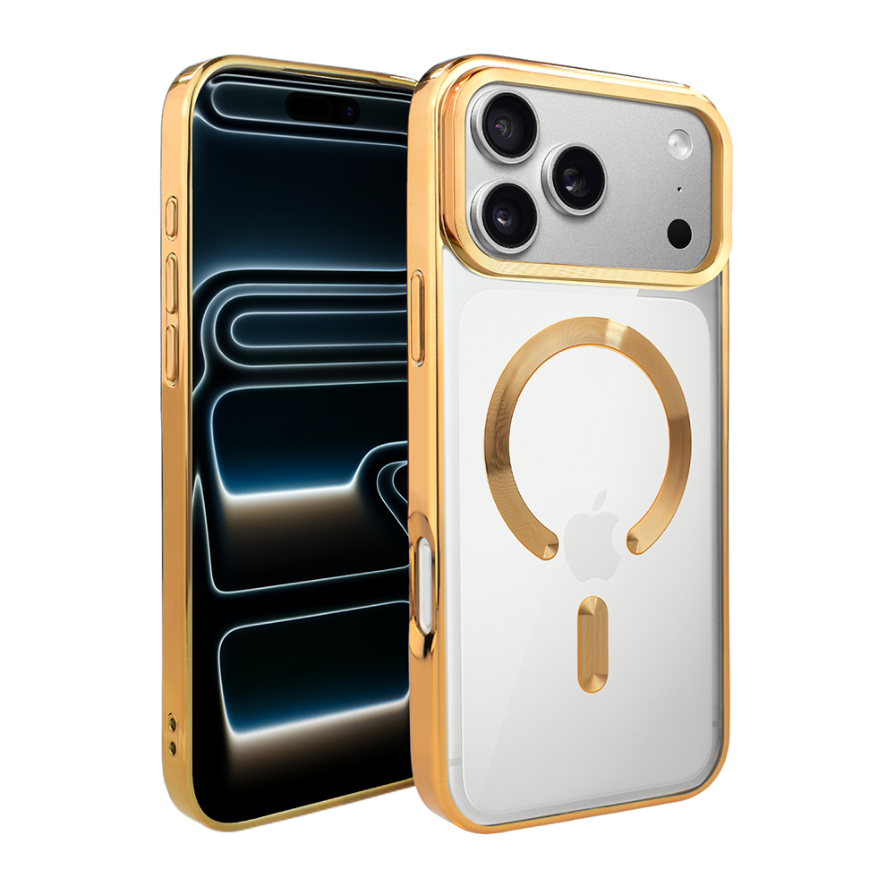 Etui do iPhone 17 Pro Max, MagSafe Luxury, przeźroczyste, złote