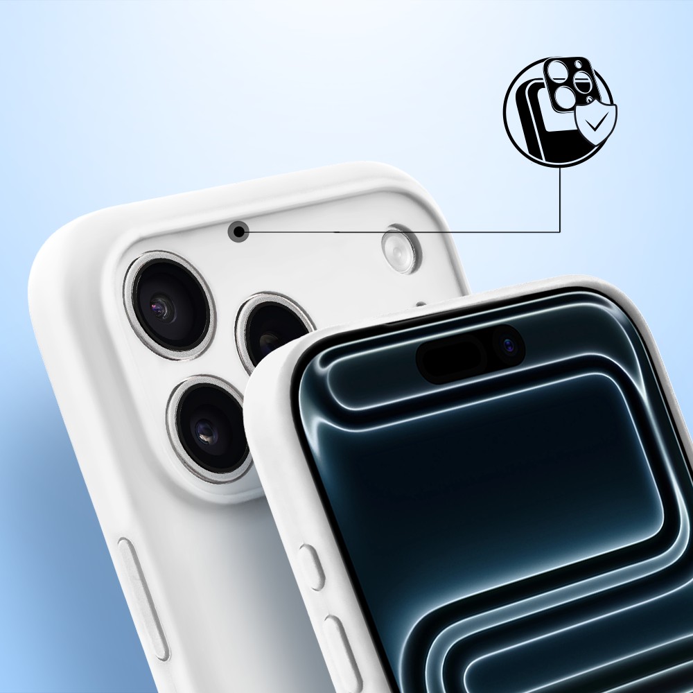 Etui do iPhone 17 Pro silikonowe z mikrofibrą soft touch z osłoną na aparat, białe alabastrowe (6)