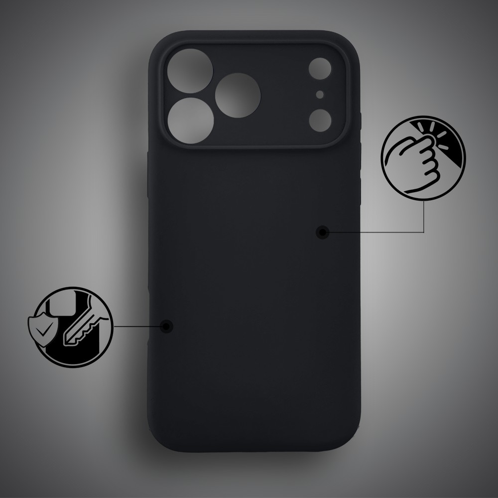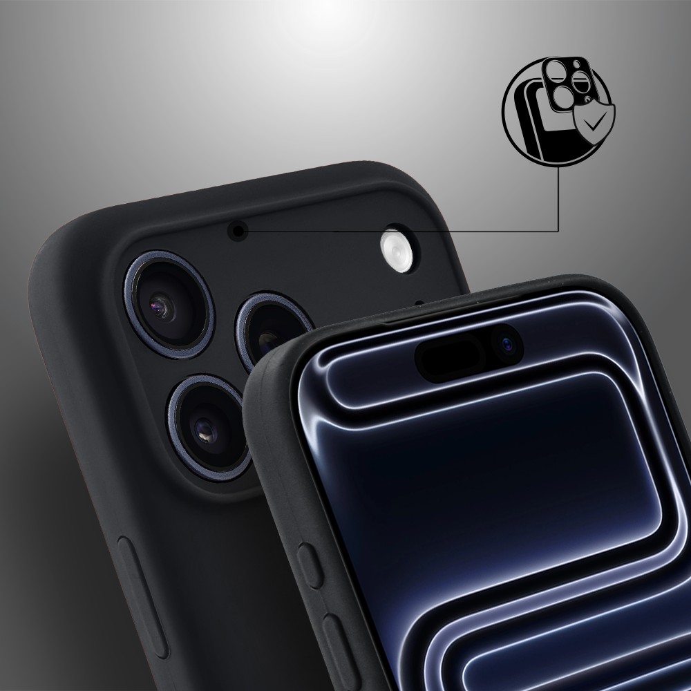 Etui do iPhone 17 Pro silikonowe z mikrofibrą soft touch z osłoną na aparat, czarne (1)