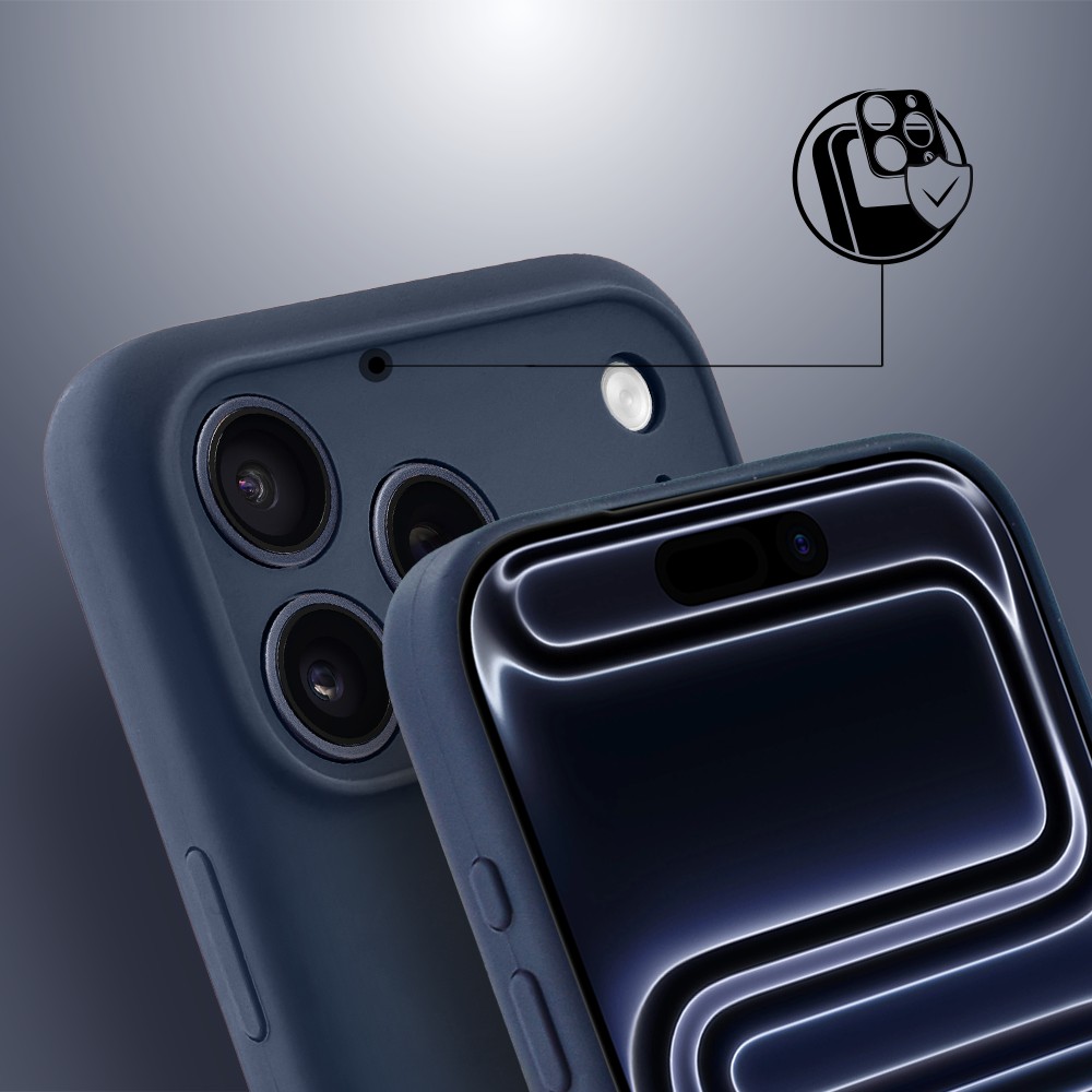 Etui do iPhone 17 Pro silikonowe z mikrofibrą soft touch z osłoną na aparat, granatowe (2)