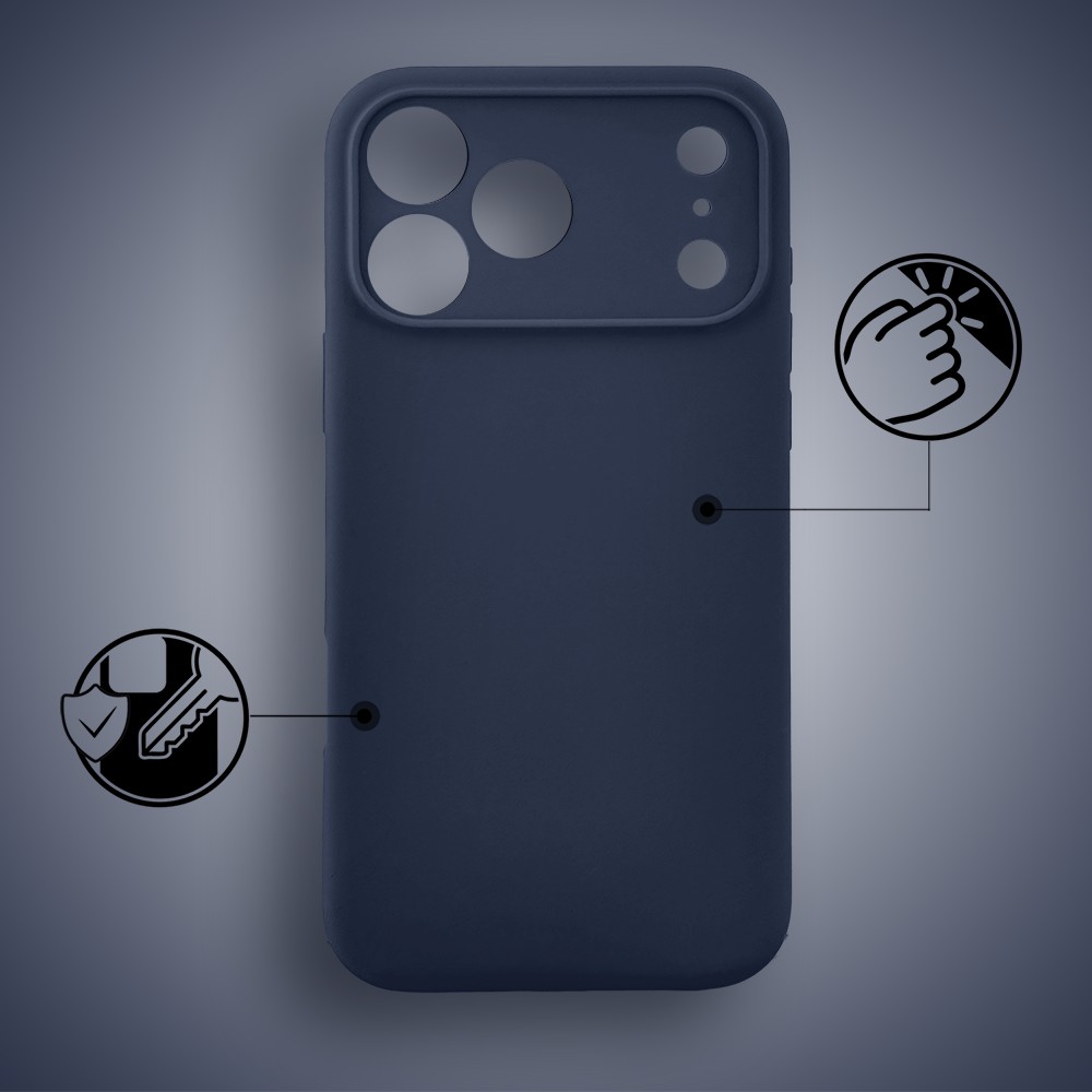 Etui do iPhone 17 Pro silikonowe z mikrofibrą soft touch z osłoną na aparat, granatowe (1)