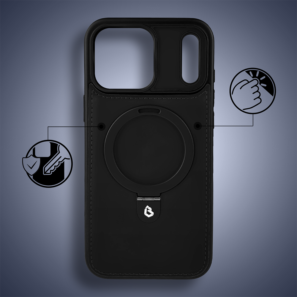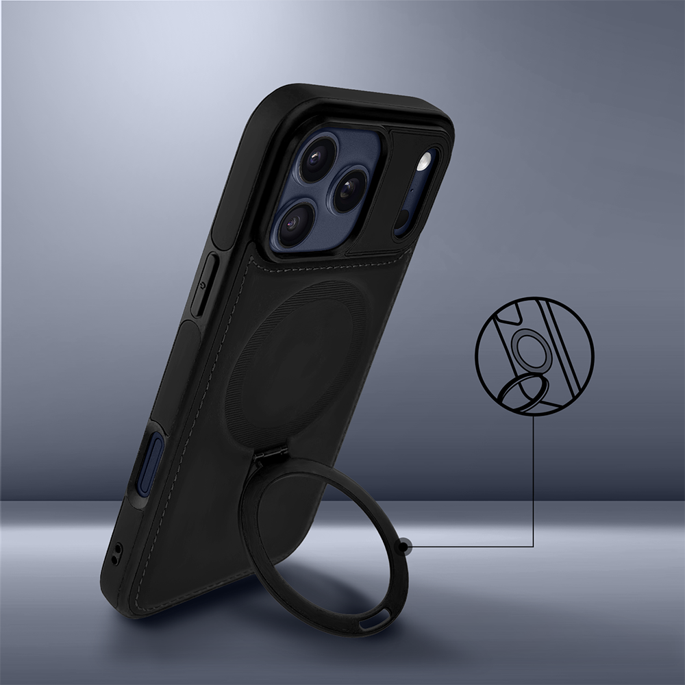 Etui wyposażone jest w metalową podstawkę, co sprawia, że jest kompatybilne z ładowarkami MagSafe. Dzięki temu można łatwo i wygodnie ładować urządzenie, bez potrzeby zdejmowania etui. W związku z zastosowaniem metalowego pierścienia nie wszystkie ładowarki bezprzewodowe będą kompatybilne. Metalowa podstawką zapewnia pewne i stabilne połączenie z ładowarką MagSafe, co gwarantuje szybkie i bezproblemowe ładowanie.Kompatybilne z ładowarkami MagSafe