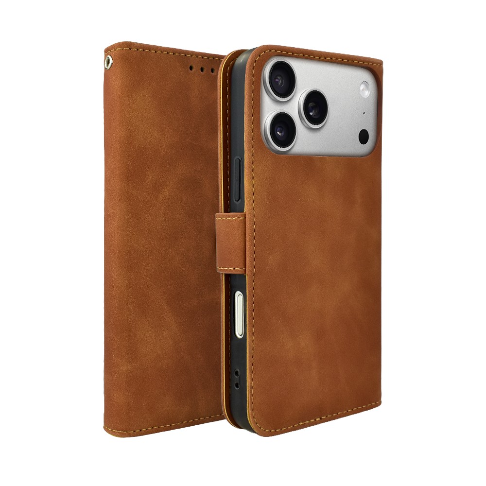 Etui do iPhone 17 Pro książkowe Velvet Touch, aksamitne, portfelowe z zamknięciem, brązowe