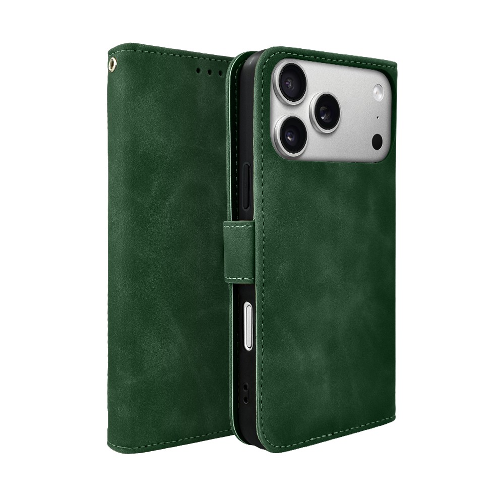 Etui do iPhone 17 Pro książkowe Velvet Touch, aksamitne, portfelowe z zamknięciem, zielone