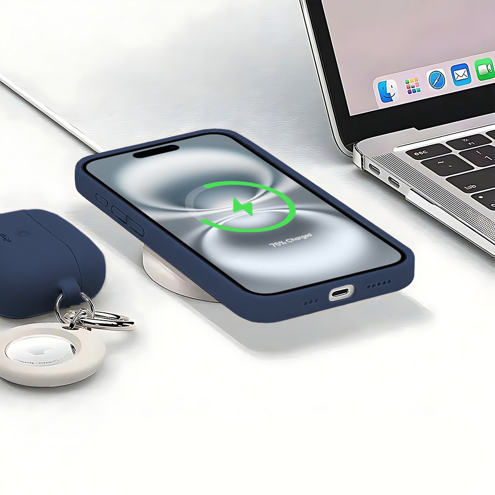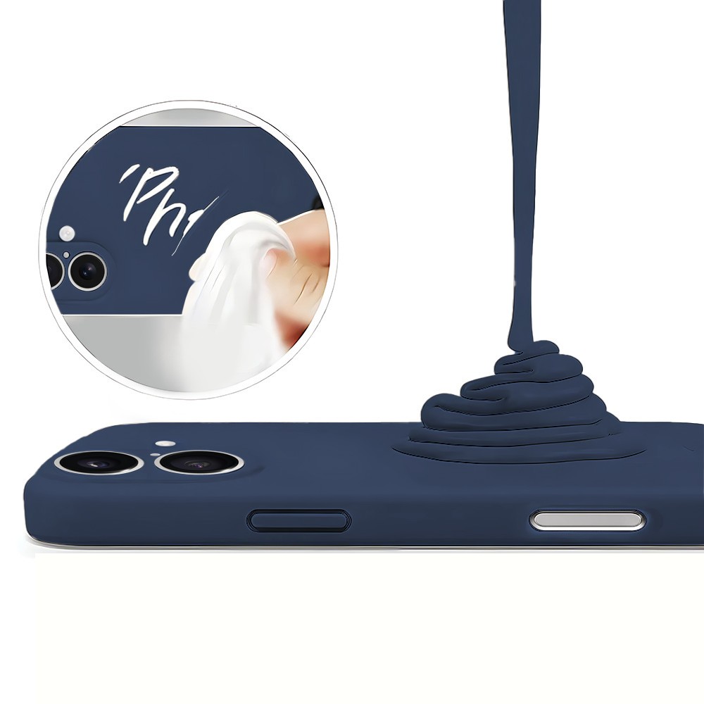 Etui do iPhone 17 silikonowe z mikrofibrą soft touch z osłoną na aparat, granatowe (7)