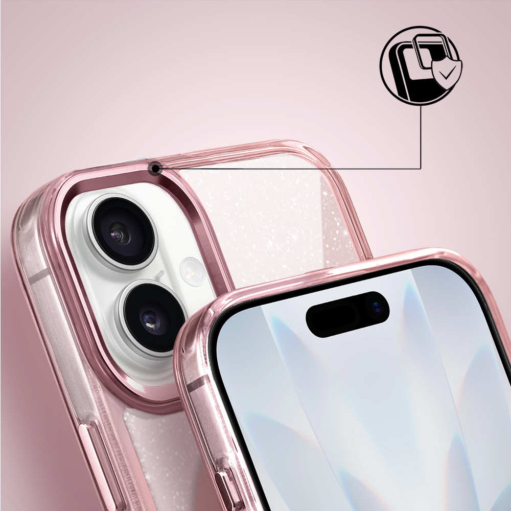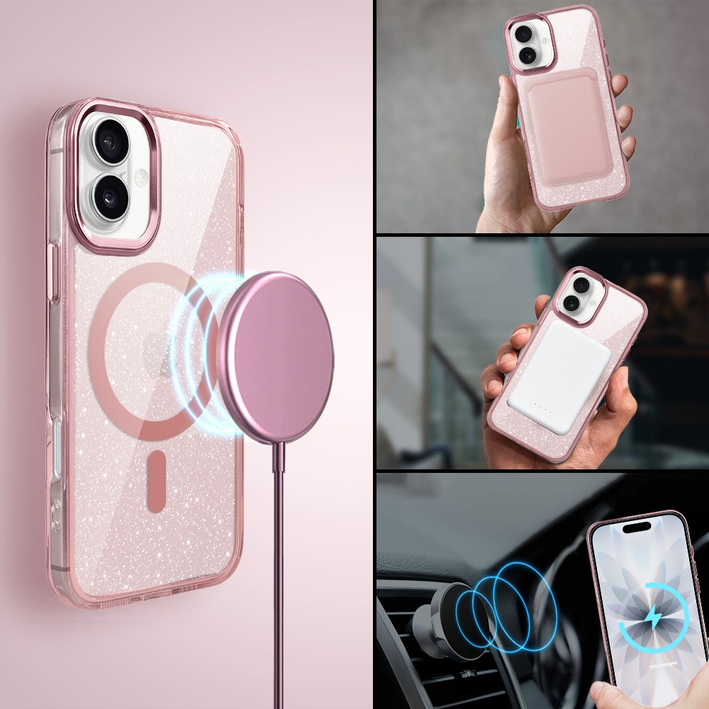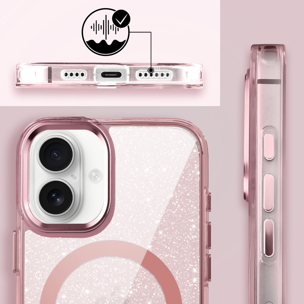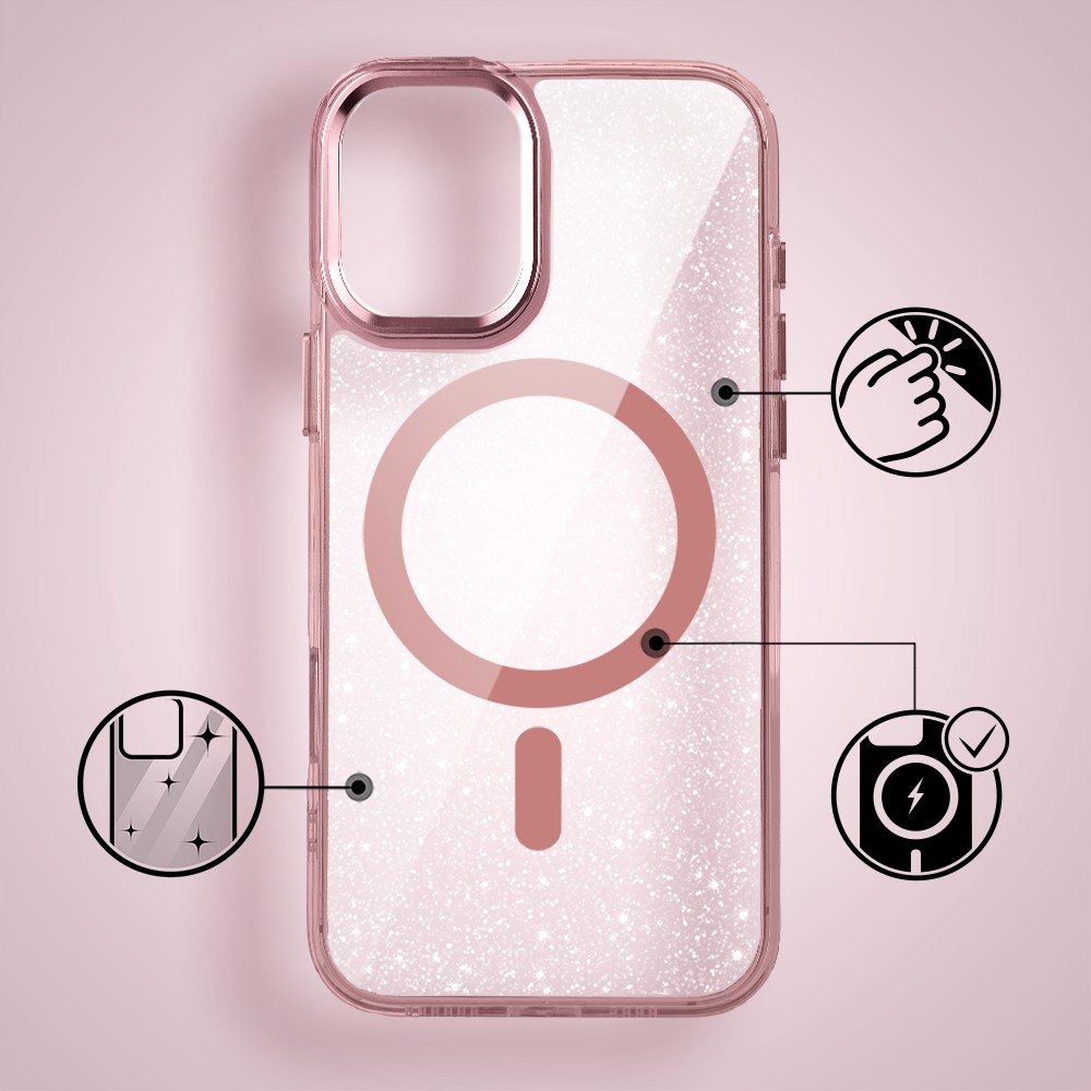 Etui do iPhone 17 Super Hybrid Sparkle z MagSafe, błyszczący, twardy brokatowy tył, metalowe ozdoby, różowe (8)