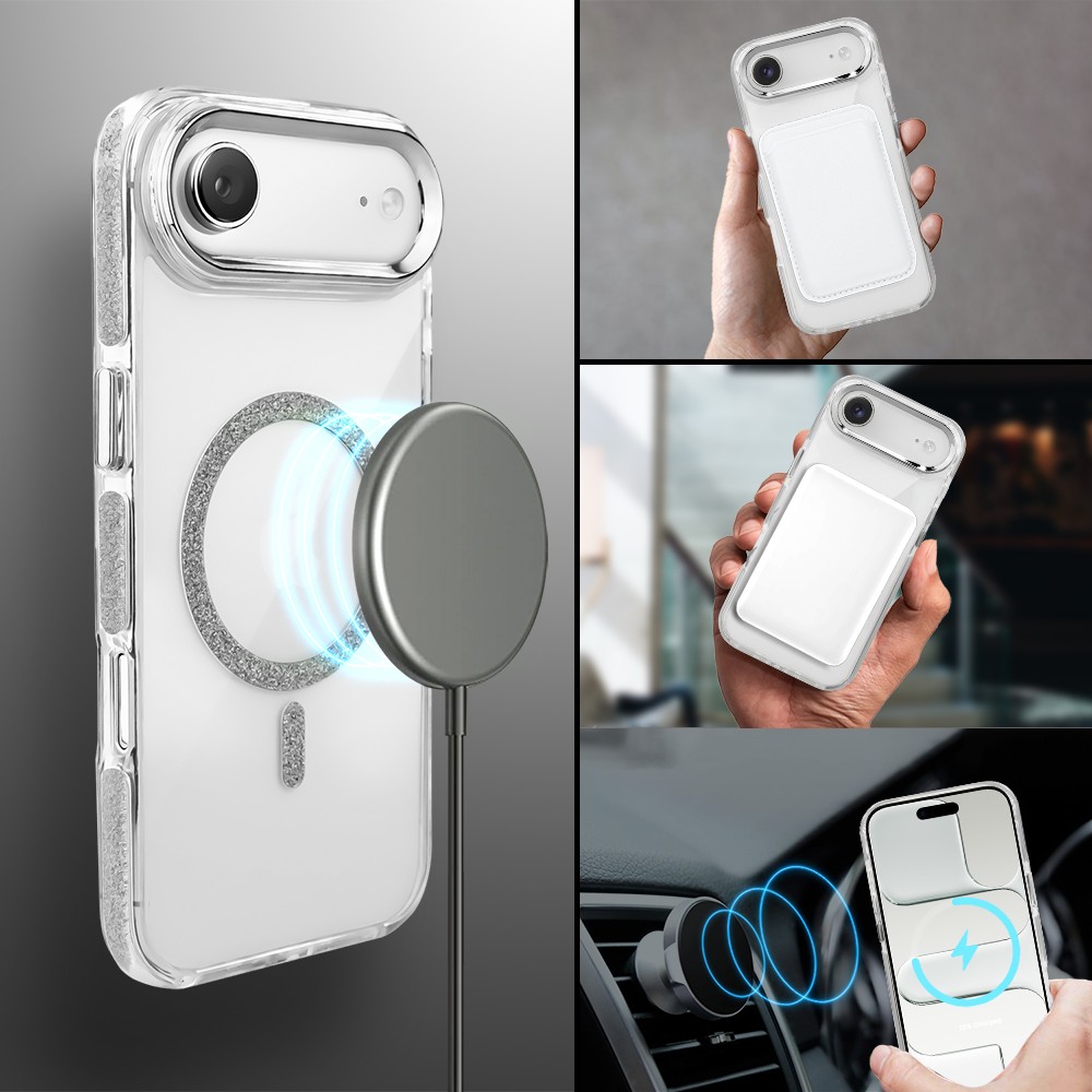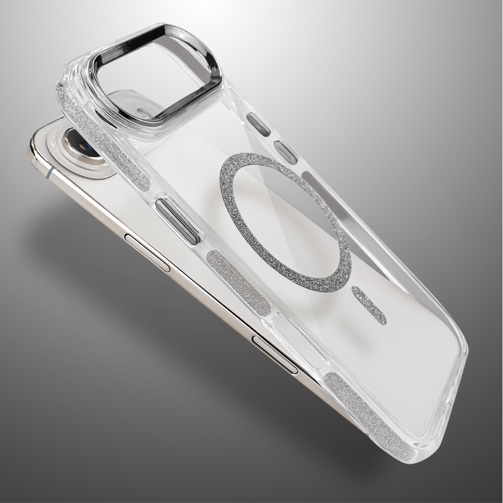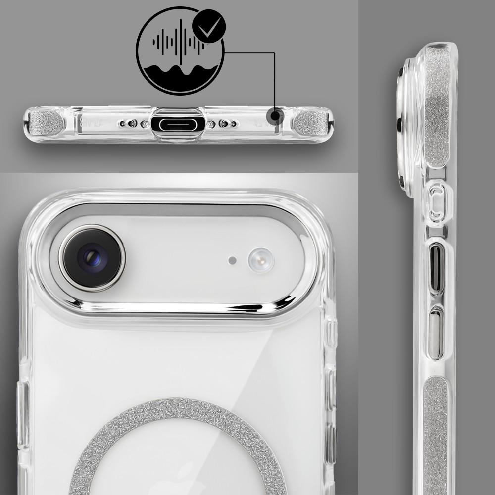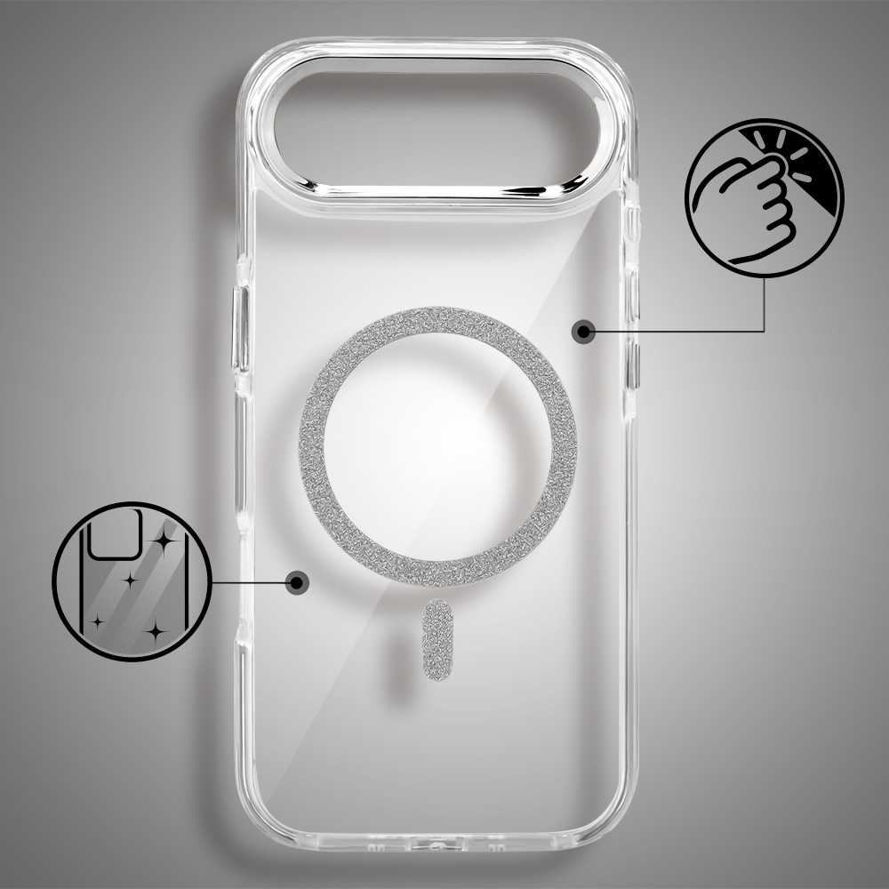 Etui do iPhone Air Glitter Shine, przeźroczyste, brokatowe z MagSafe, srebrne (1)