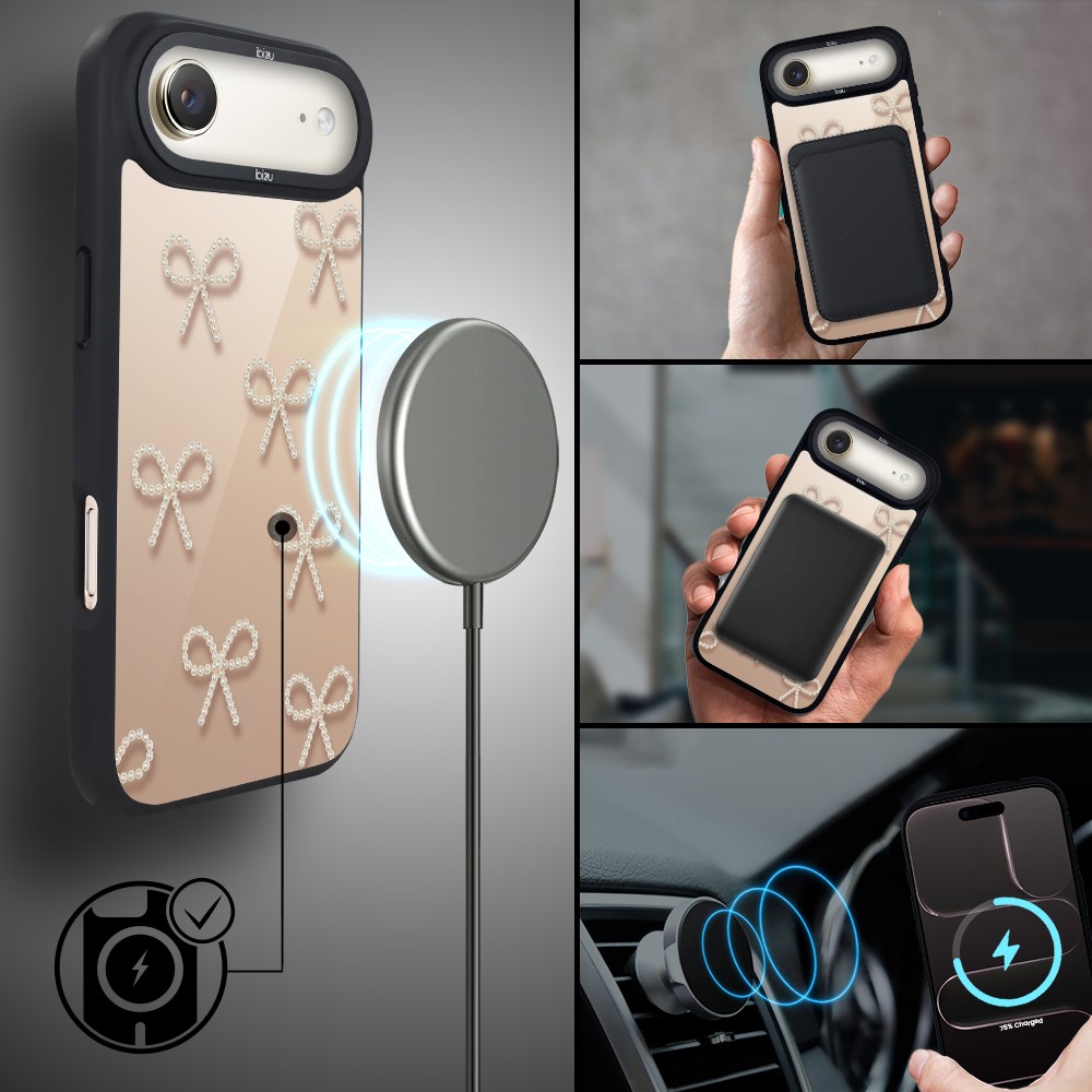 Etui do iPhone Air IBIZU DropGuard Matt z MagSafe, Zimowa magia, Perłowe kokardki AIR_DM