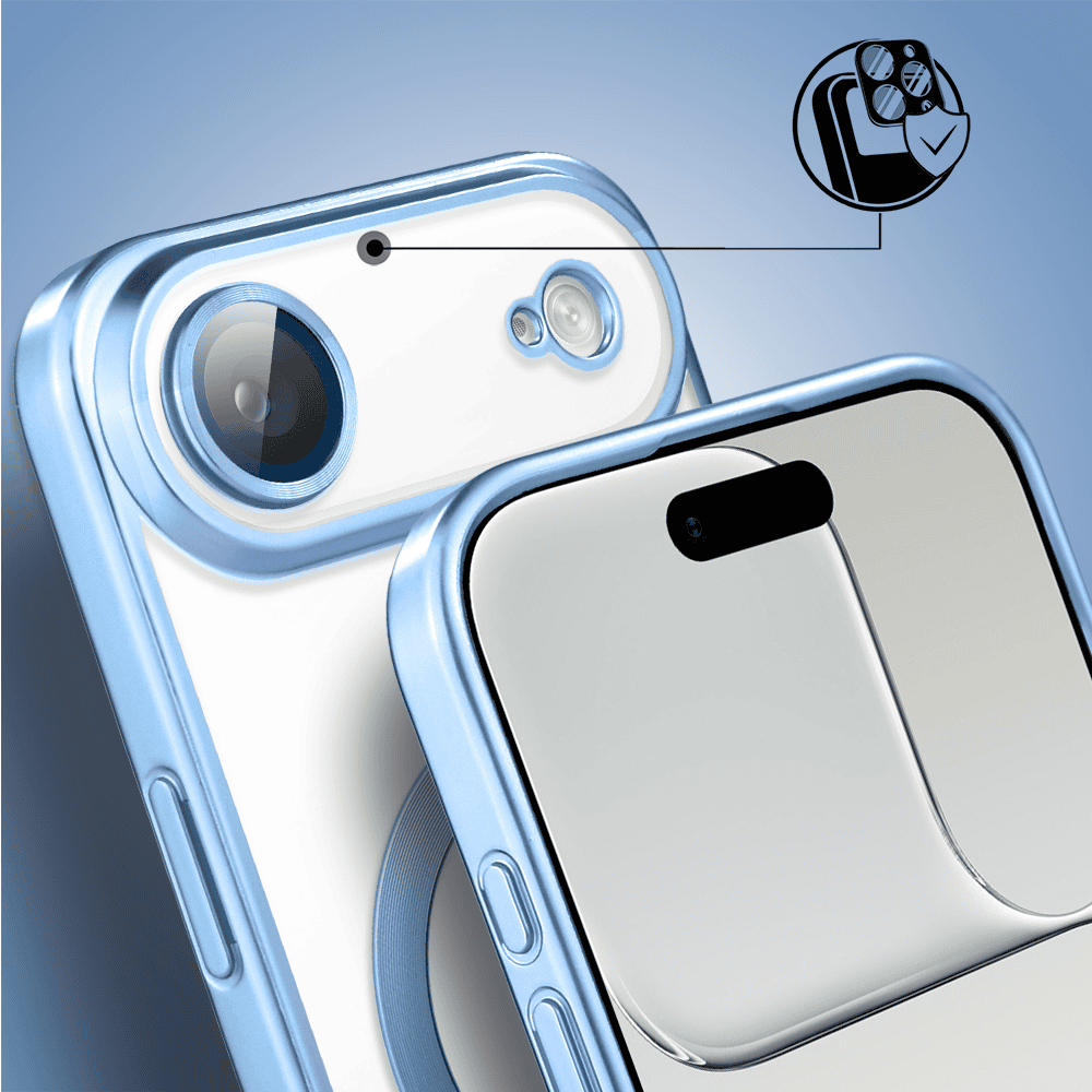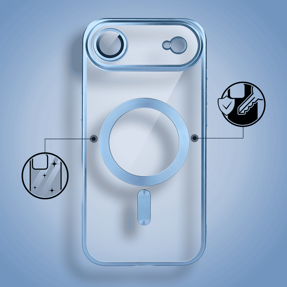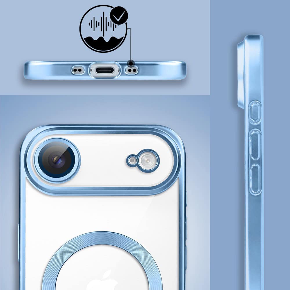 Etui do iPhone Air MagSafe Luxury Protect przeźroczyste, z osłoną aparatu, Titanium Finish, niebieskie