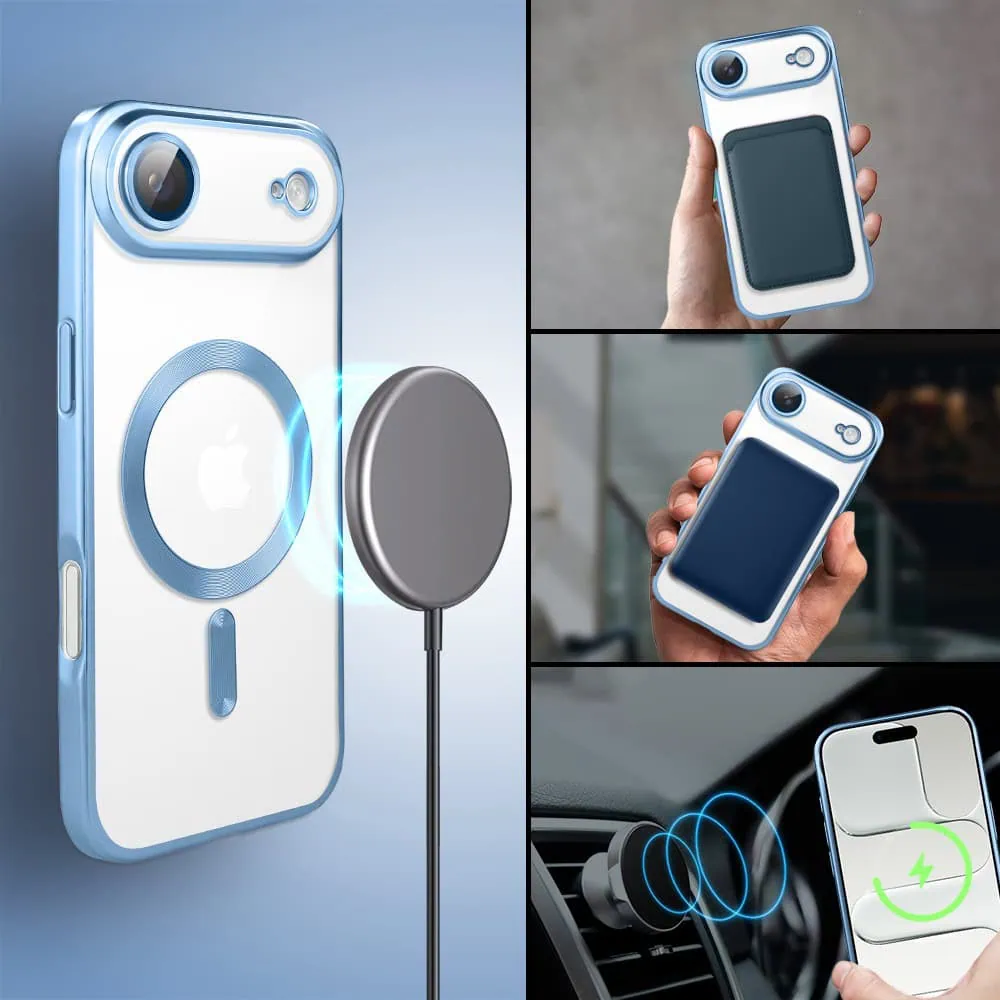 Etuitelefon.pl > Akcesoria do iphone air > Etui iphone air > Etui do iphone air magsafe luxury protect przeźroczyste, z osłoną aparatu, titanium finish, niebieskie