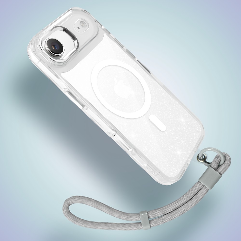 Etui do iPhone 17 Air Super Hybrid Sparkle z MagSafe, błyszczący, twardy brokatowy tył, metalowe ozdoby, przeźroczyste (9)