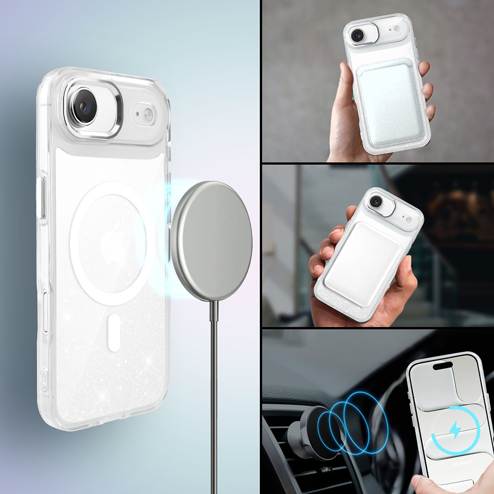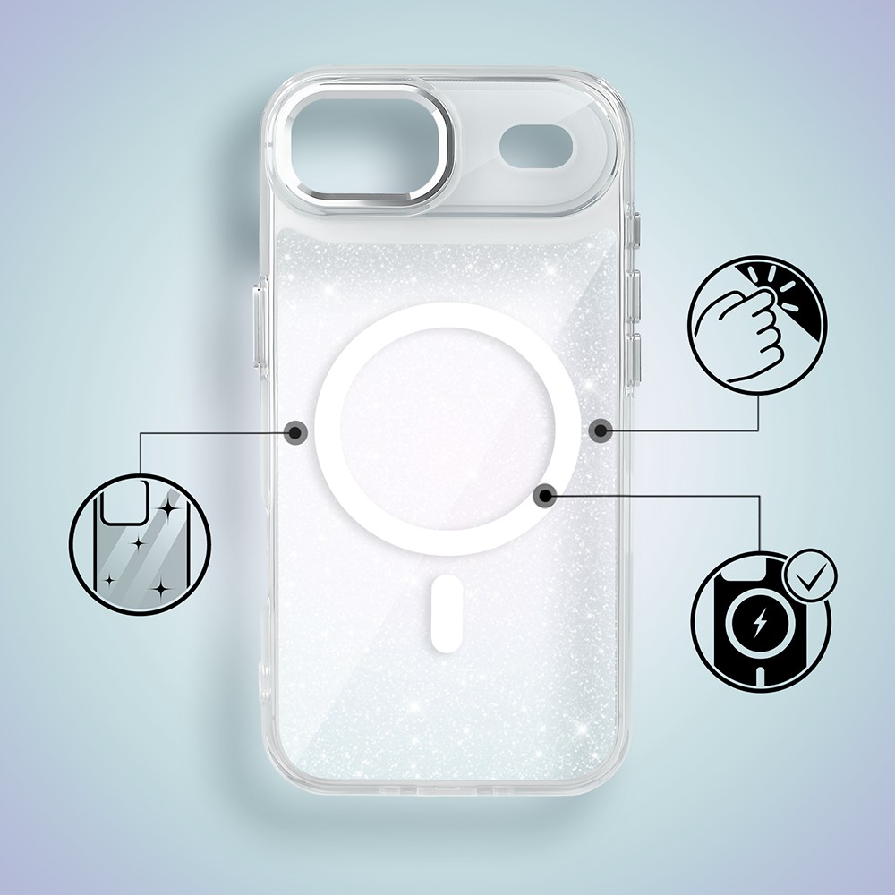 Etui do iPhone 17 Air Super Hybrid Sparkle z MagSafe, błyszczący, twardy brokatowy tył, metalowe ozdoby, przeźroczyste (6)