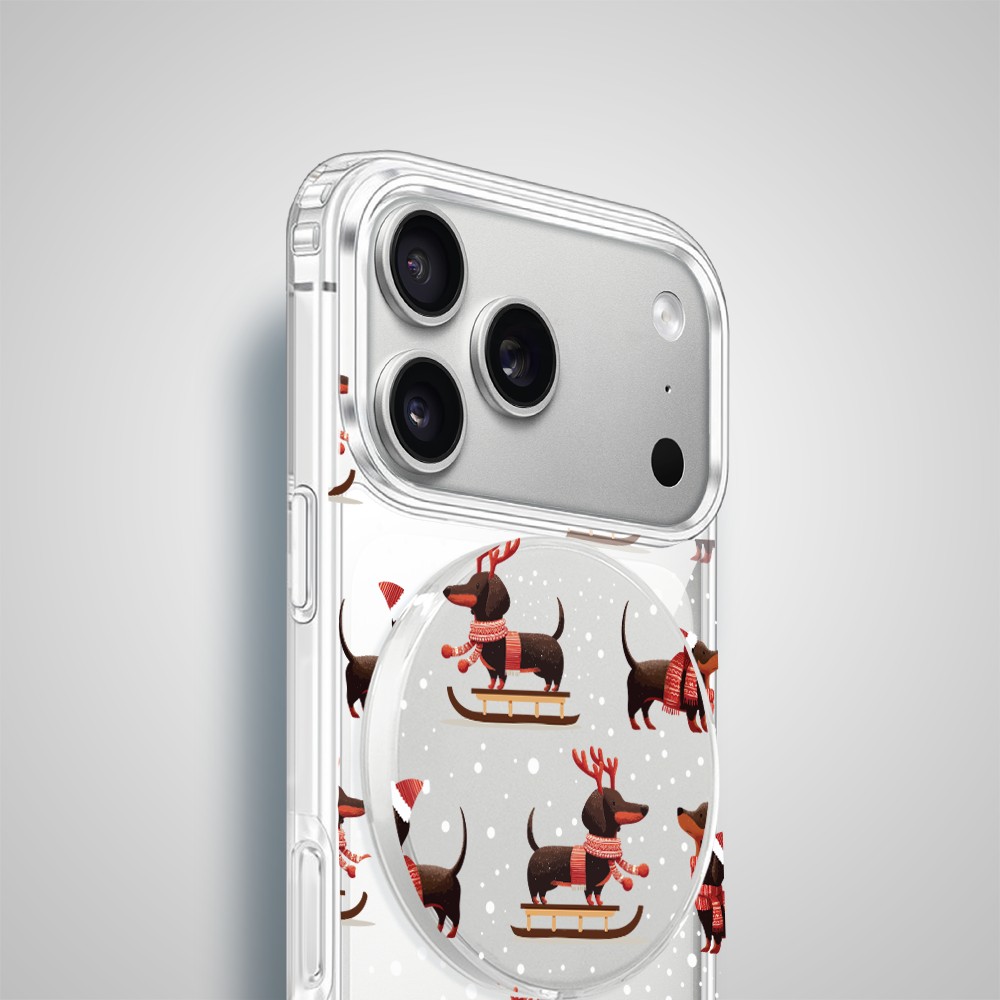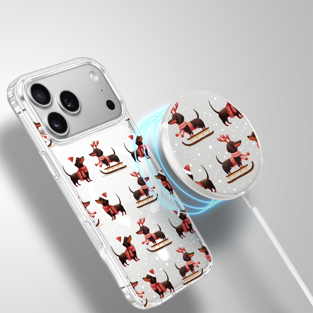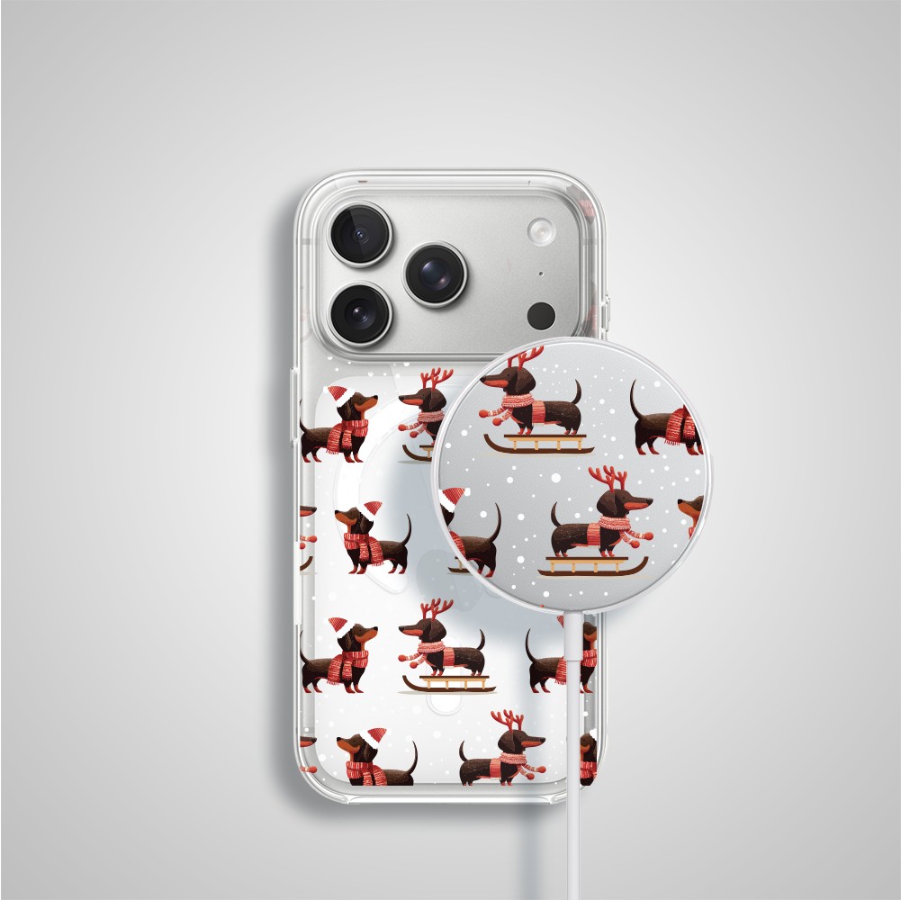 Jeśli lubisz podkreślać swój styl poprzez dodatki, nasza ładowarka MagSafe jest idealnym wyborem. Sprawdzi się zarówno z klasycznymi etui do iPhone’a jak i w komplecie z etui z wzorem jamniki na saniach, które znajdziesz w naszym sklepie.