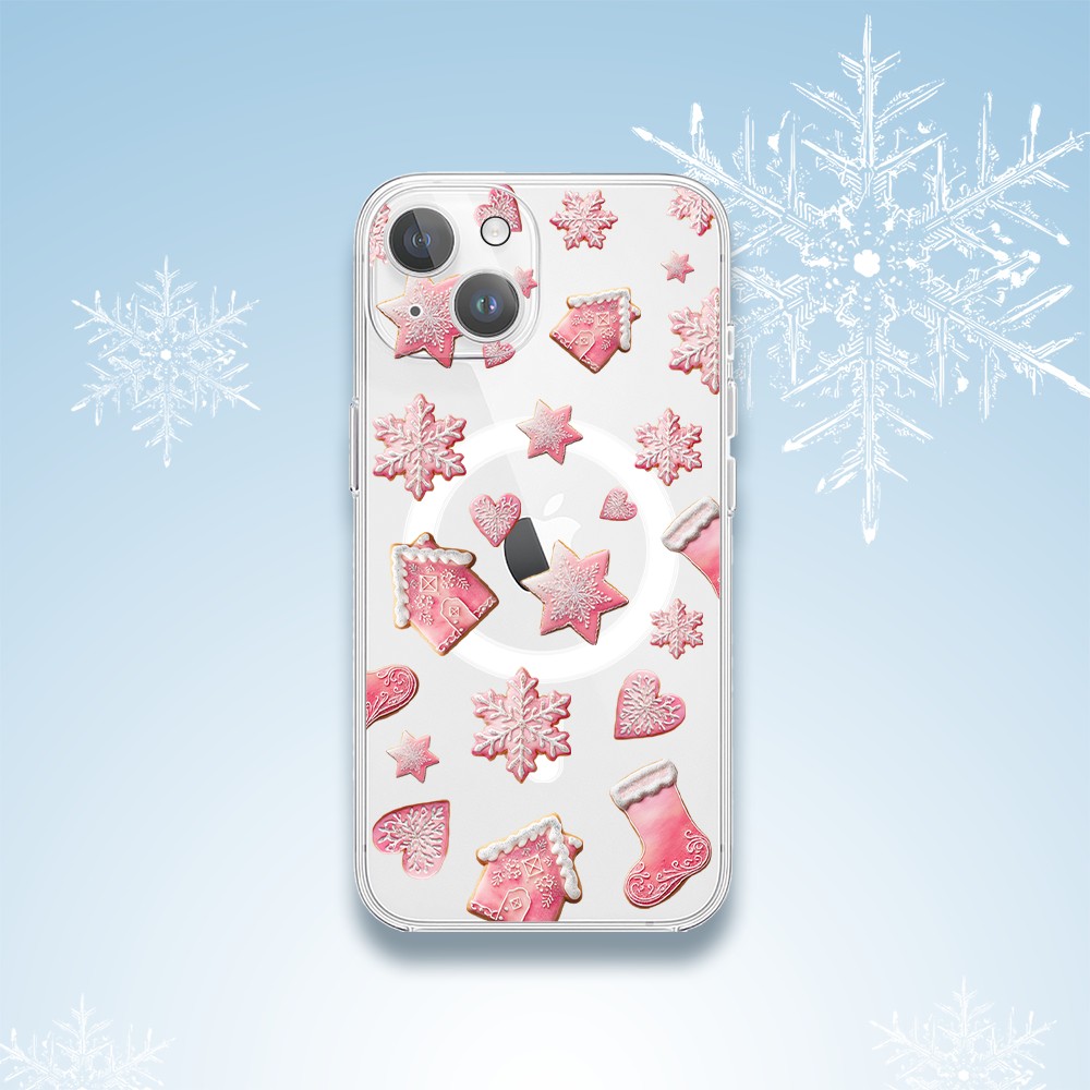 Etui na ładowarkę MagSafe antypoślizgowe, transparentne z wzorem różowe pierniczki