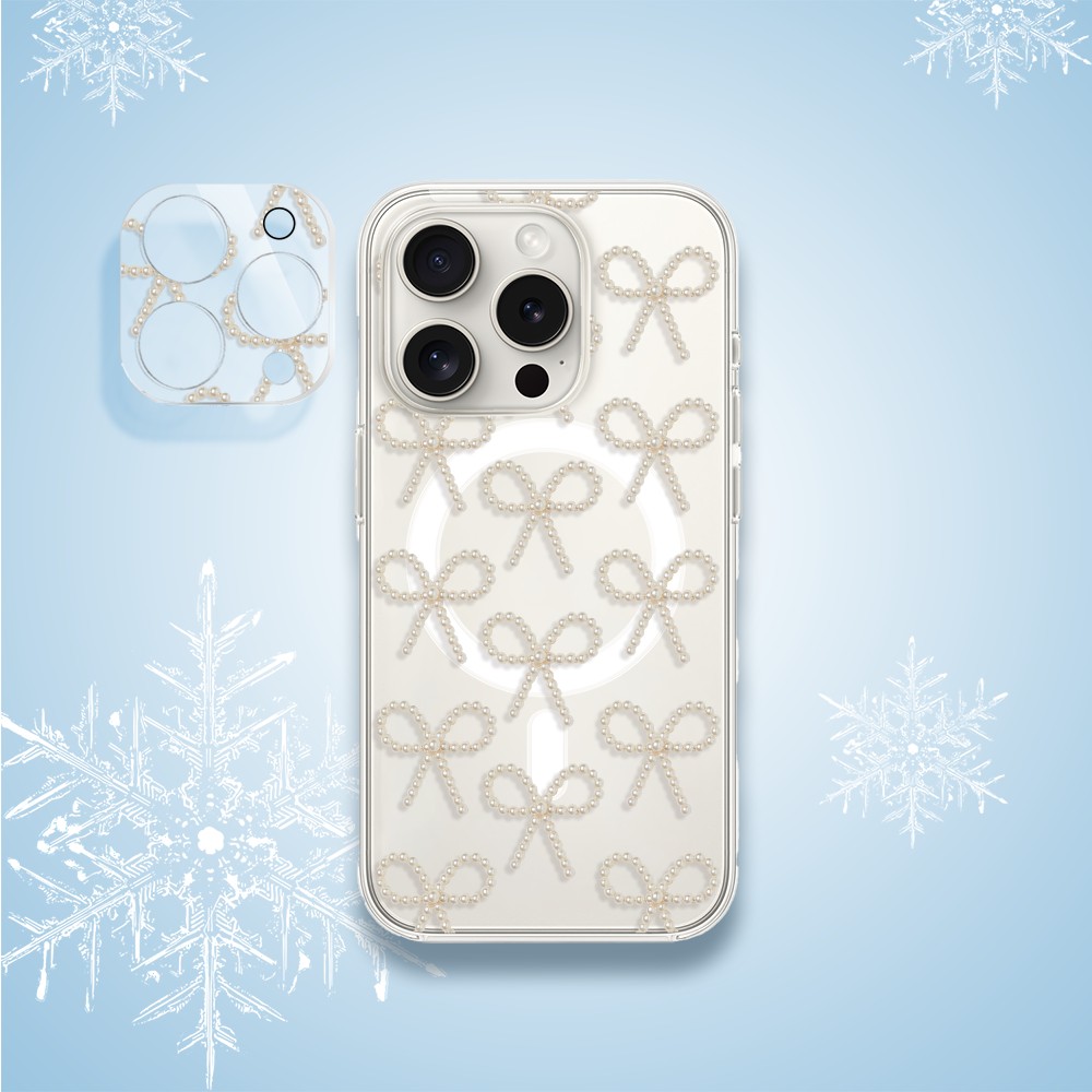 Power bank MagSafe 5000mAh ładowanie bezprzewodowe iPhone 17/16/15/14/13/12, złote kokardki, biały