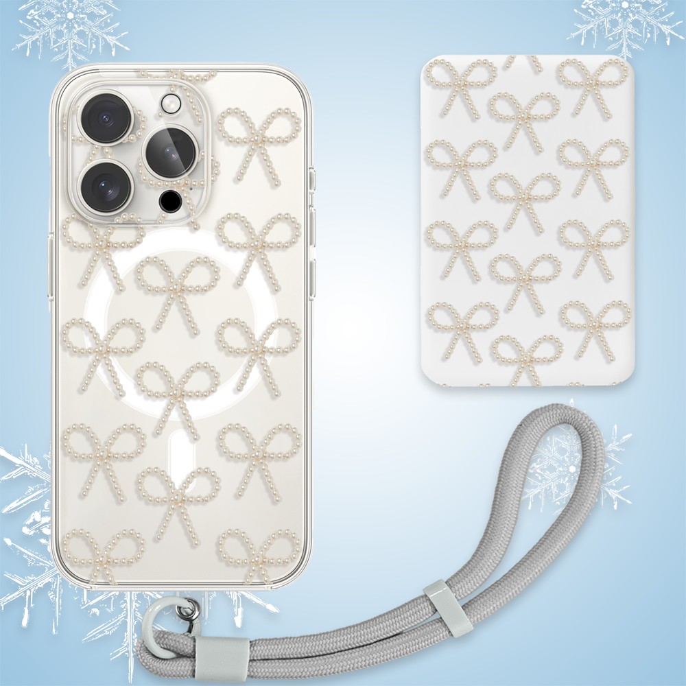 1Power bank MagSafe 5000mAh ładowanie bezprzewodowe iPhone 17:16:15:14:13:12, złote kokardki, biały