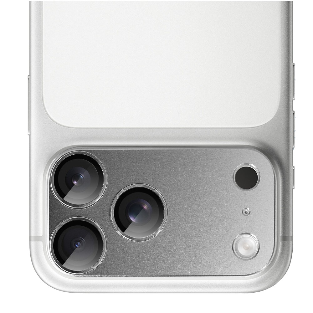 Osłona jest kompatybilna ze wszystkimi etui iPhone 17 Pro z wycięciem na cały panel aparatów w naszym sklepie. Idealnie pasuje do tytanowych etui, a także do iPhone 17 Pro w kolorze srebrnym.