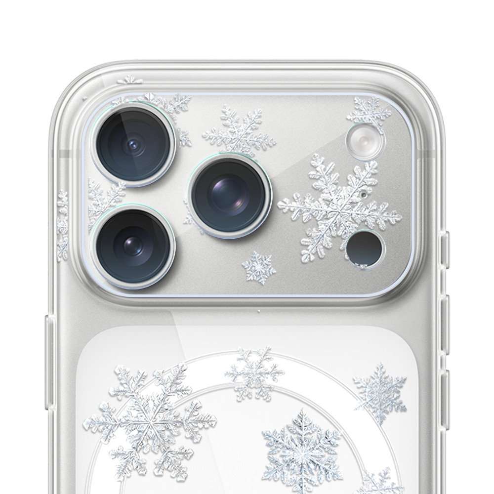 iPhone 17 Pro Max pełne szkło hartowane na cały aparat, kamerę, delikatne płatki śniegu