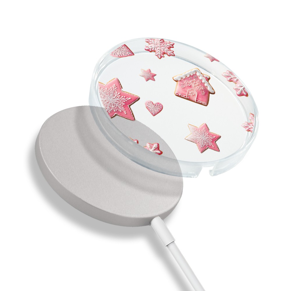 Etui na ładowarkę MagSafe antypoślizgowe, transparentne z wzorem różowe pierniczki