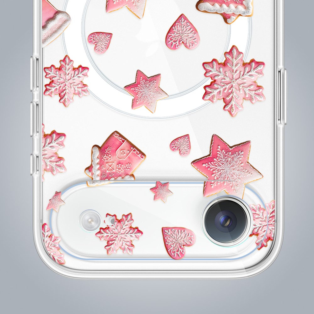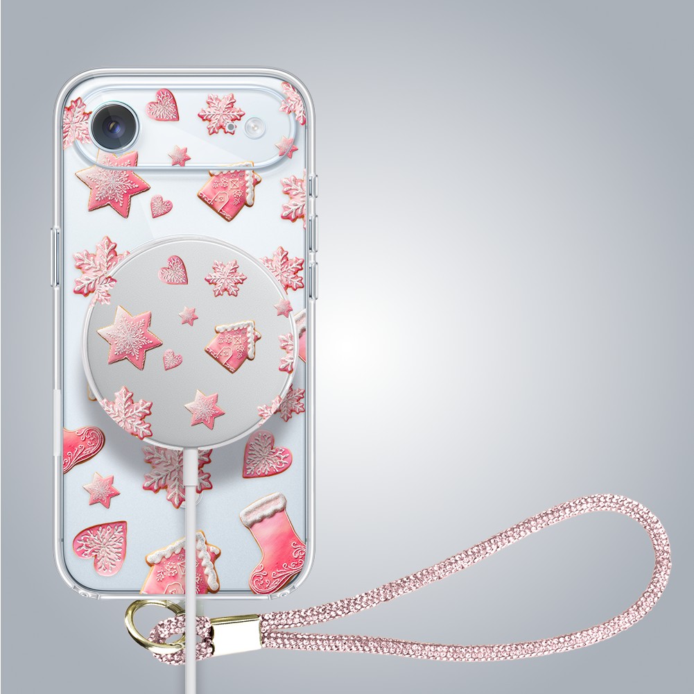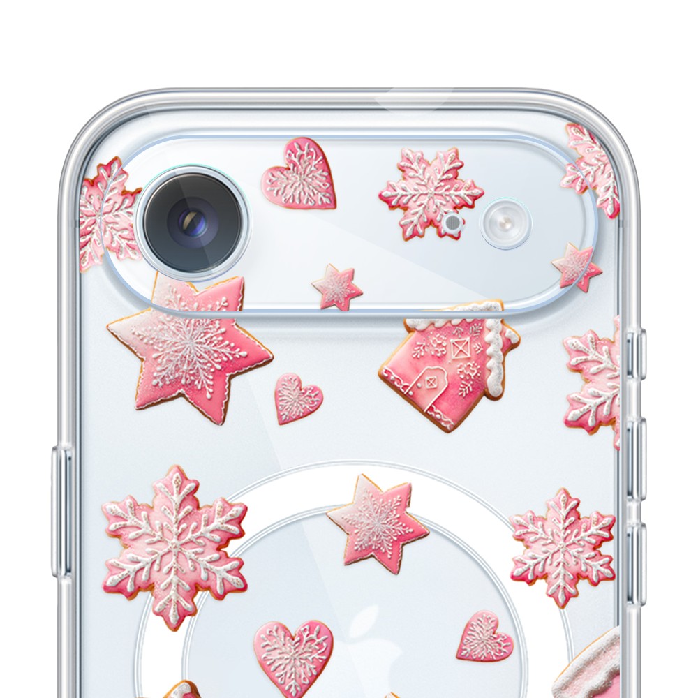 Etui na ładowarkę MagSafe antypoślizgowe, transparentne z wzorem różowe pierniczki 17 pro