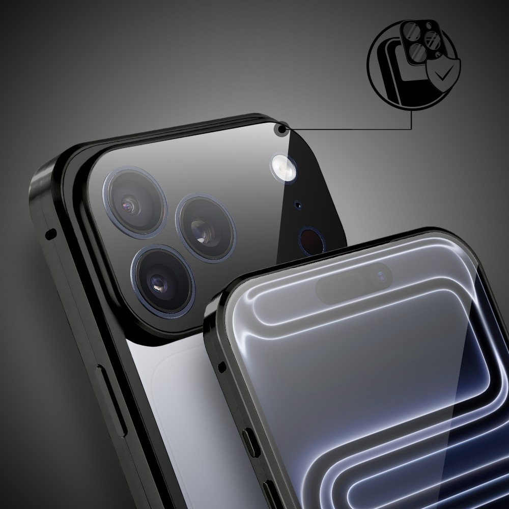 Obudowa do iPhone 17 Pro Max, podwójna szyba i aluminium 360° przód + tył magnetyczna, z osłoną aparatu i szkłem prywatyzującym, czarna (8)