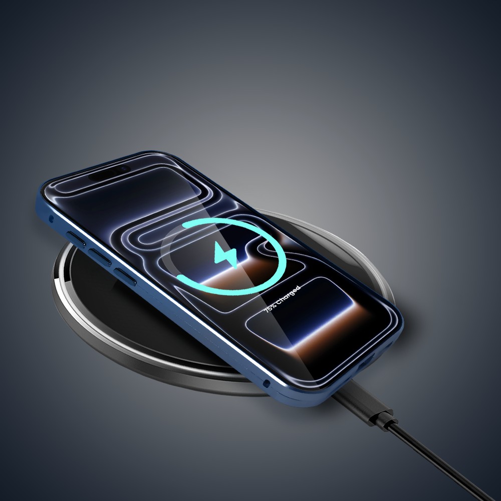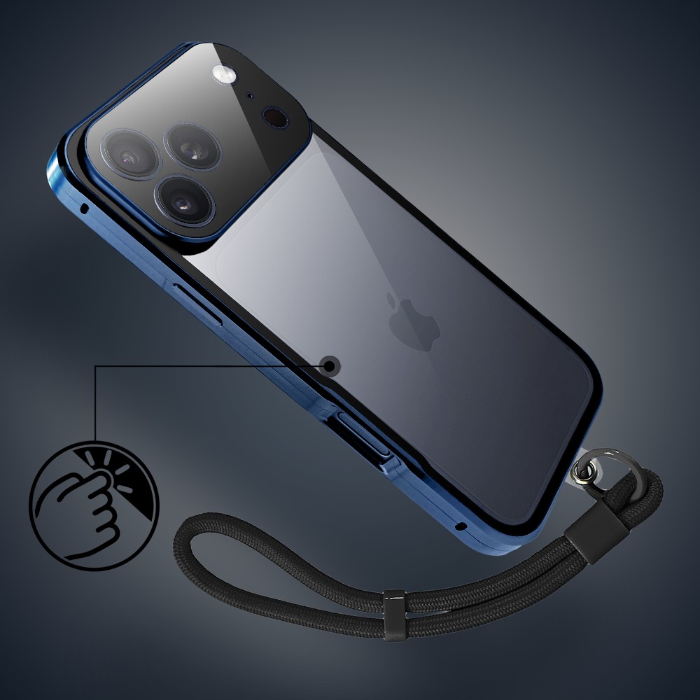 Obudowa do iPhone 17 Pro Max podwójna szyba i polerowane aluminium 360° magnetyczna, z osłoną aparatu, granatowa Obszar kompozycji 2