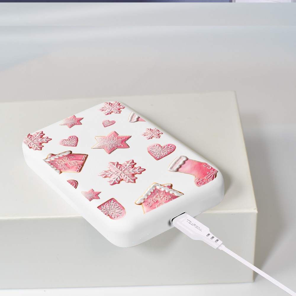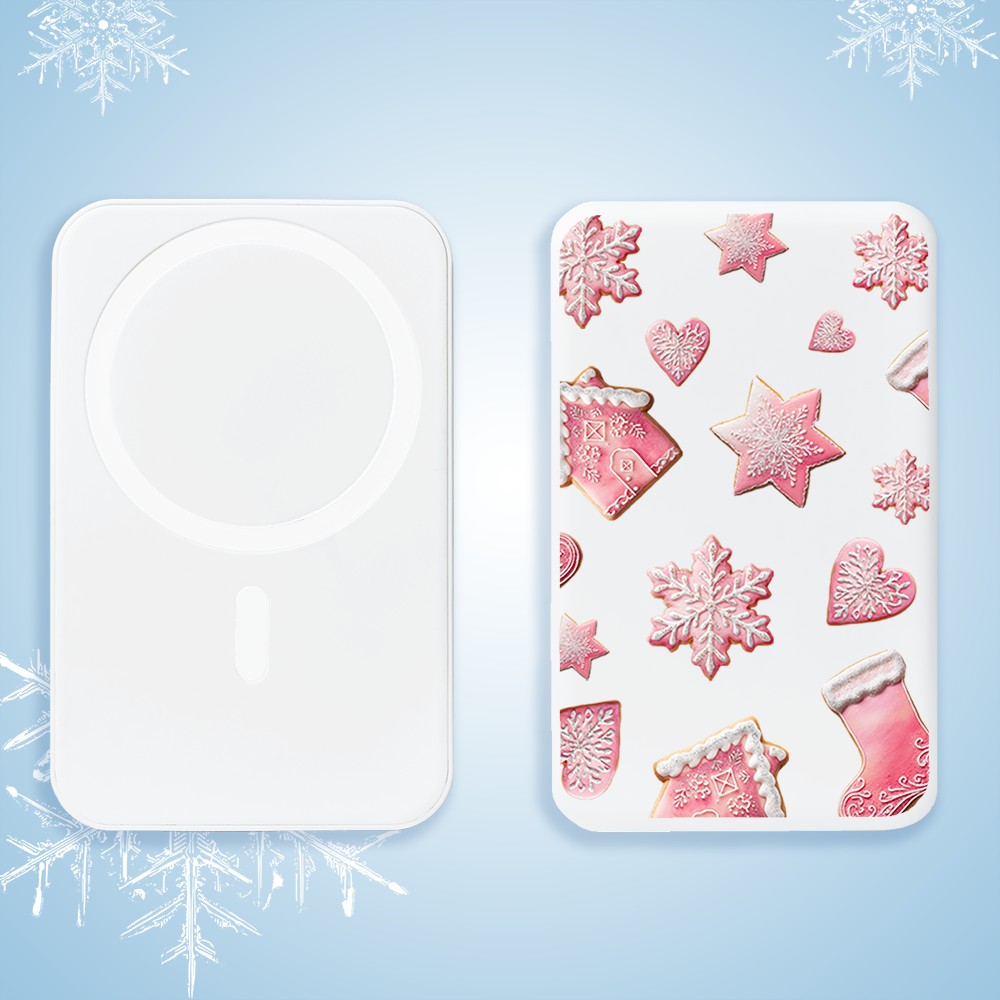 Power bank MagSafe 5000mAh ładowanie bezprzewodowe iPhone 17/16/15/14/13/12, różowe pierniczki, biały