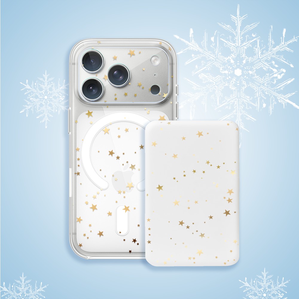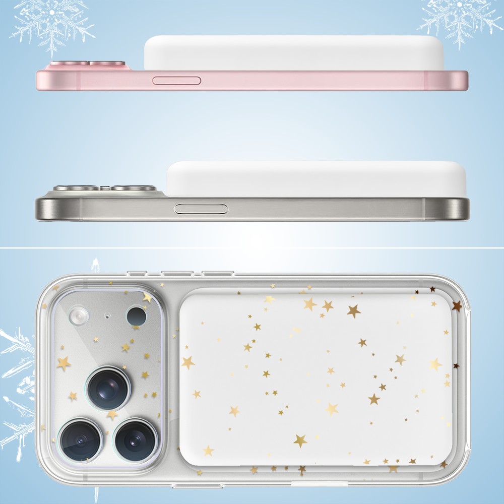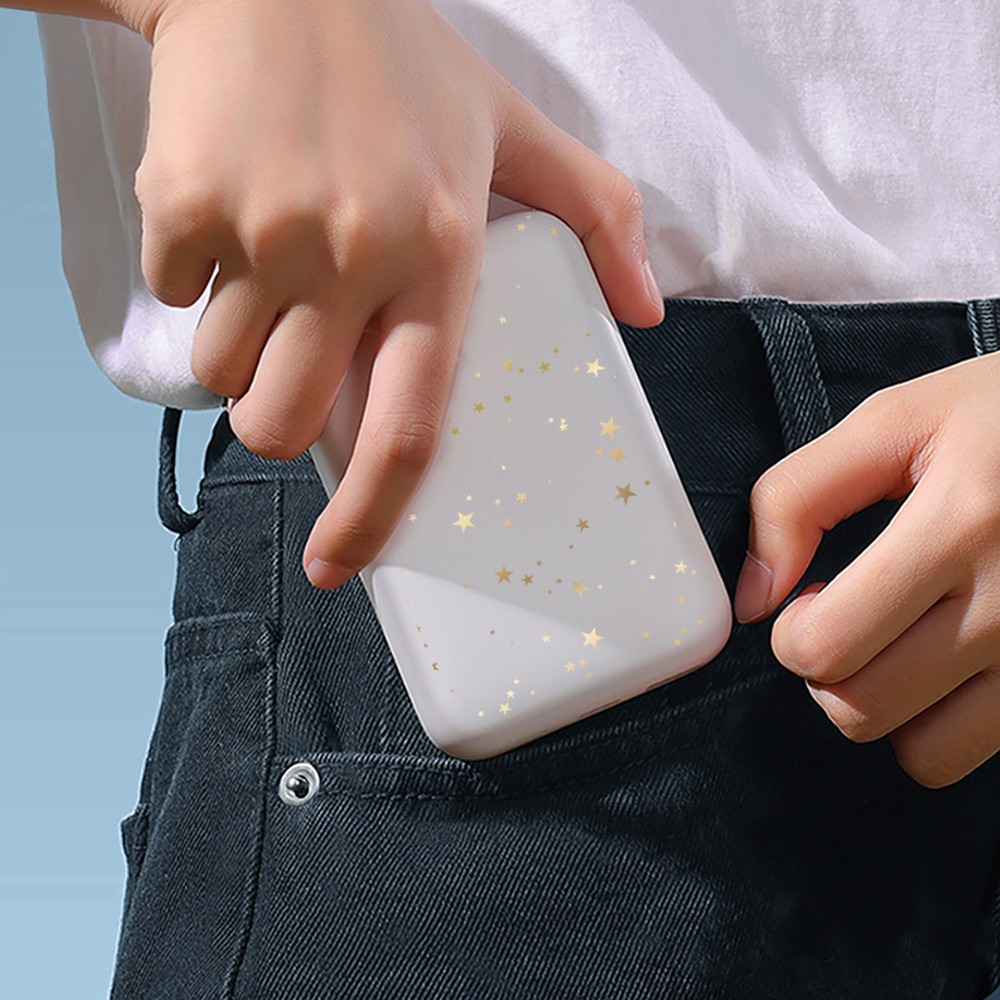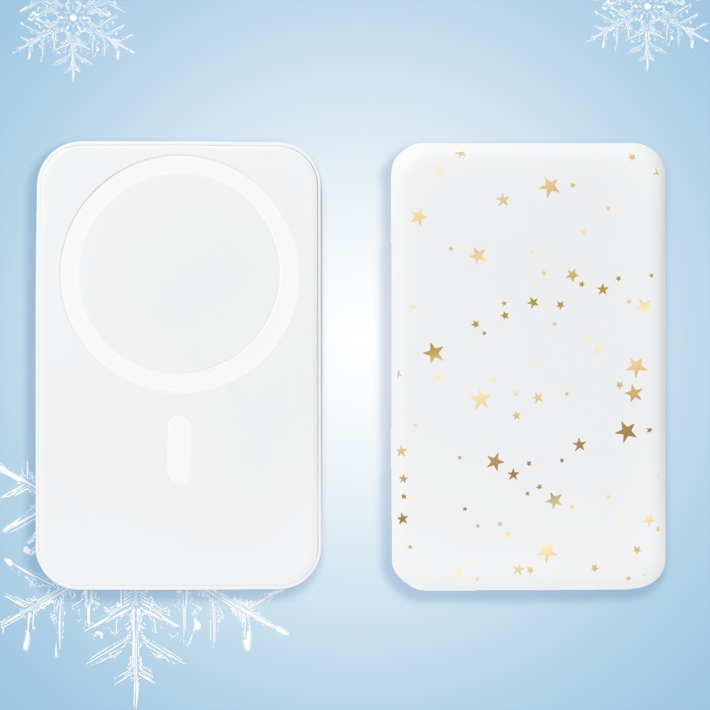 Power bank MagSafe 5000mAh ładowanie bezprzewodowe iPhone 17/16/15/14/13/12, złote gwiazdki, biały