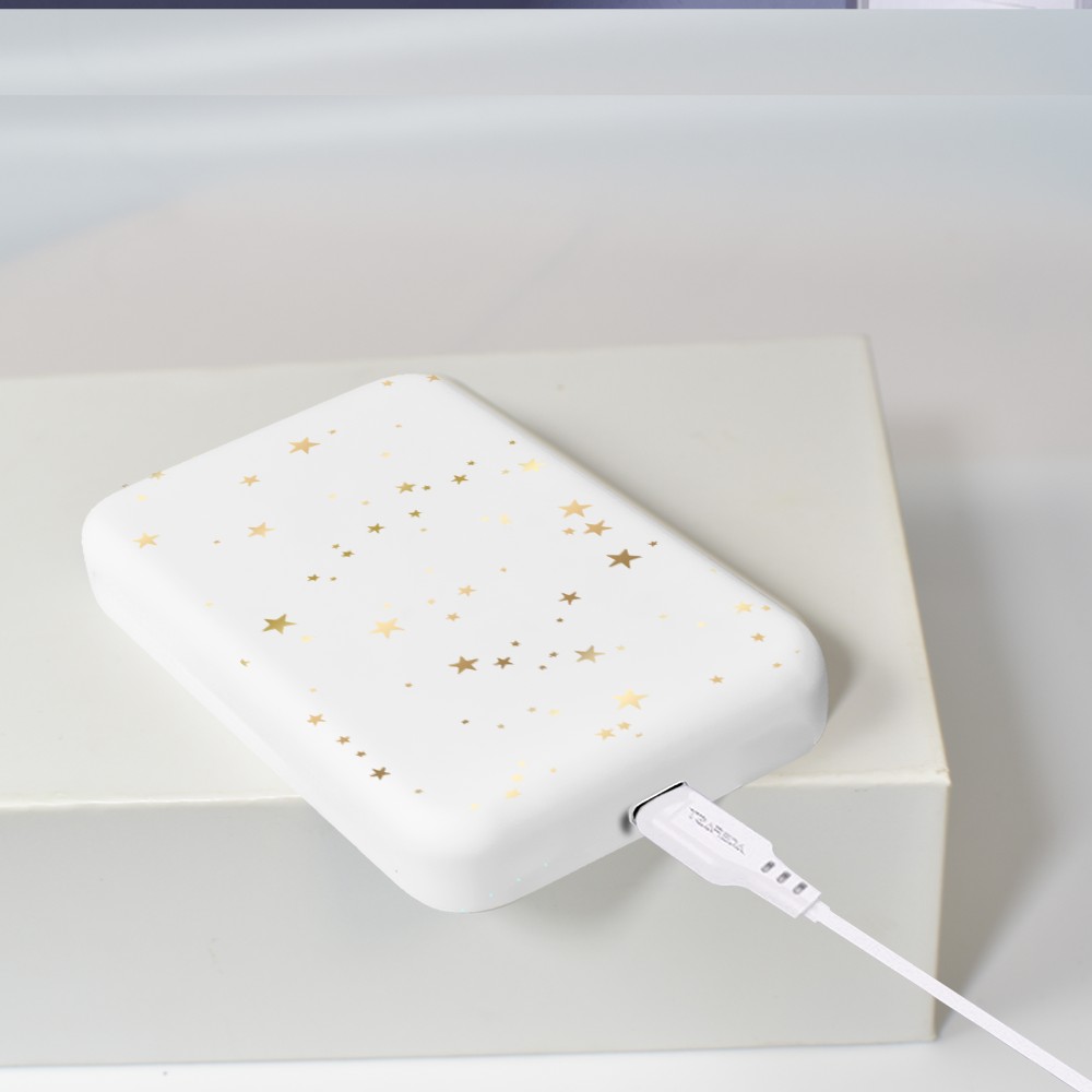 Etuitelefon.pl > Akcesoria gsm > Powerbanki > Power bank magsafe 5000mah ładowanie bezprzewodowe iphone 17/16/15/14/13/12, złote gwiazdki, biały
