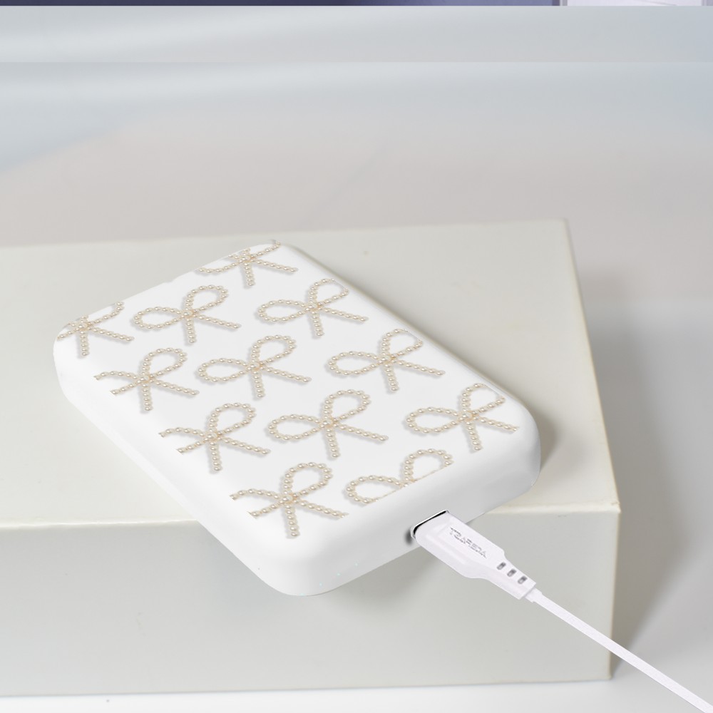 Magnetyczny, bezprzewodowy power bank MagSafe wyróżnia się pojemnością 5000mA. Za sprawą nowoczesnej technologii produkt zapewnia szybkie ładowanie na poziomie nawet 10W. Estetyczny wygląd i klasyczny biały kolor z wzorem sprawiają, że power bank wygląda świetnie w każdej sytuacji. Doskonale dopasowane magnesy pozwalają na bezprzewodowe ładowanie baterii. Miłośnicy klasycznych rozwiązań mogą uzupełnić poziom energii w urządzeniu za pomocą kabla.