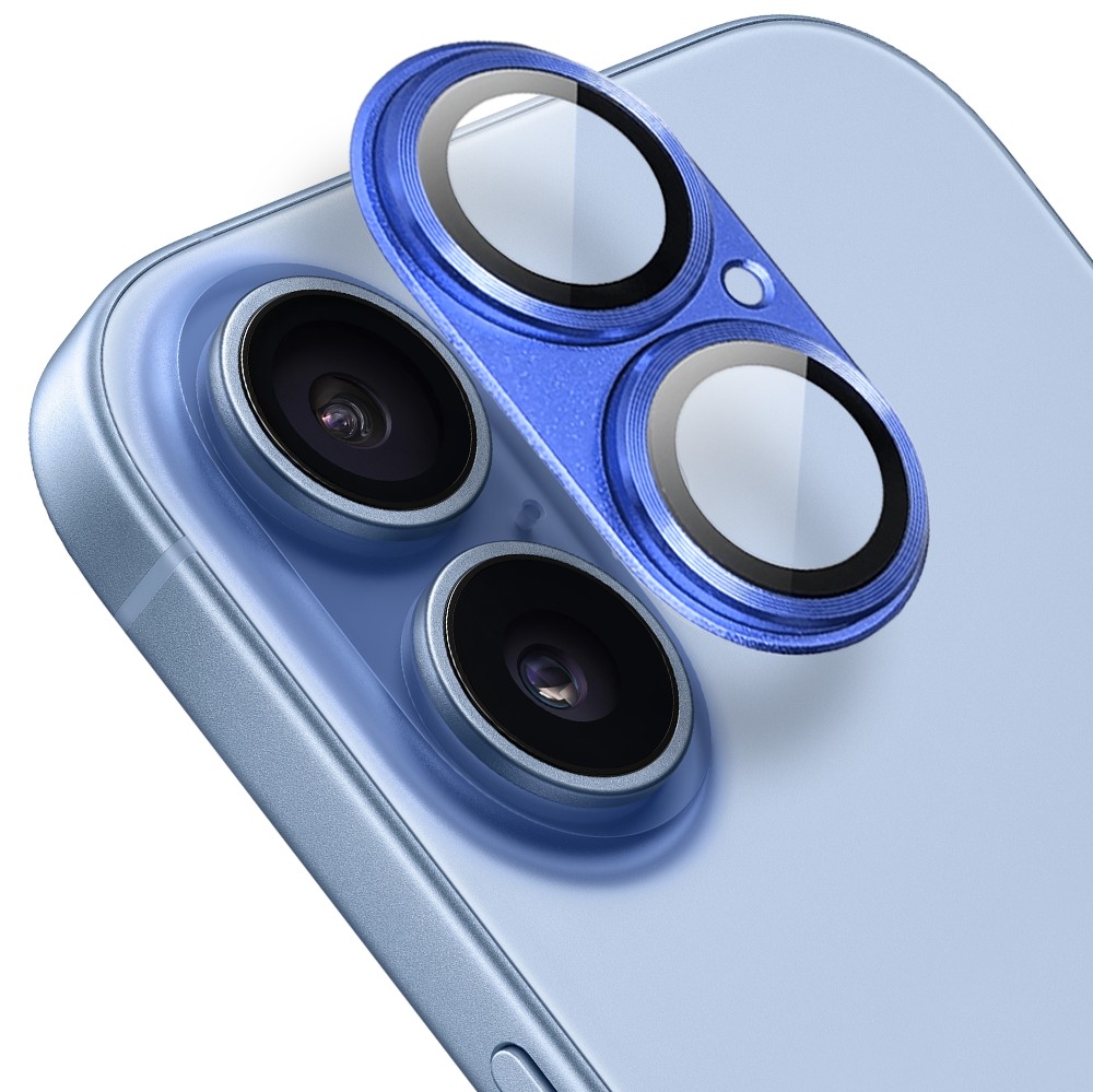 iPhone 17 gładka metalowa osłona na cały aparat, wbudowane szkła 9H, niebieska