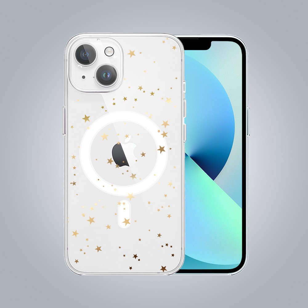 • Etui do iPhone 13 z MagSafe, złote gwiazdki, przeźroczyste