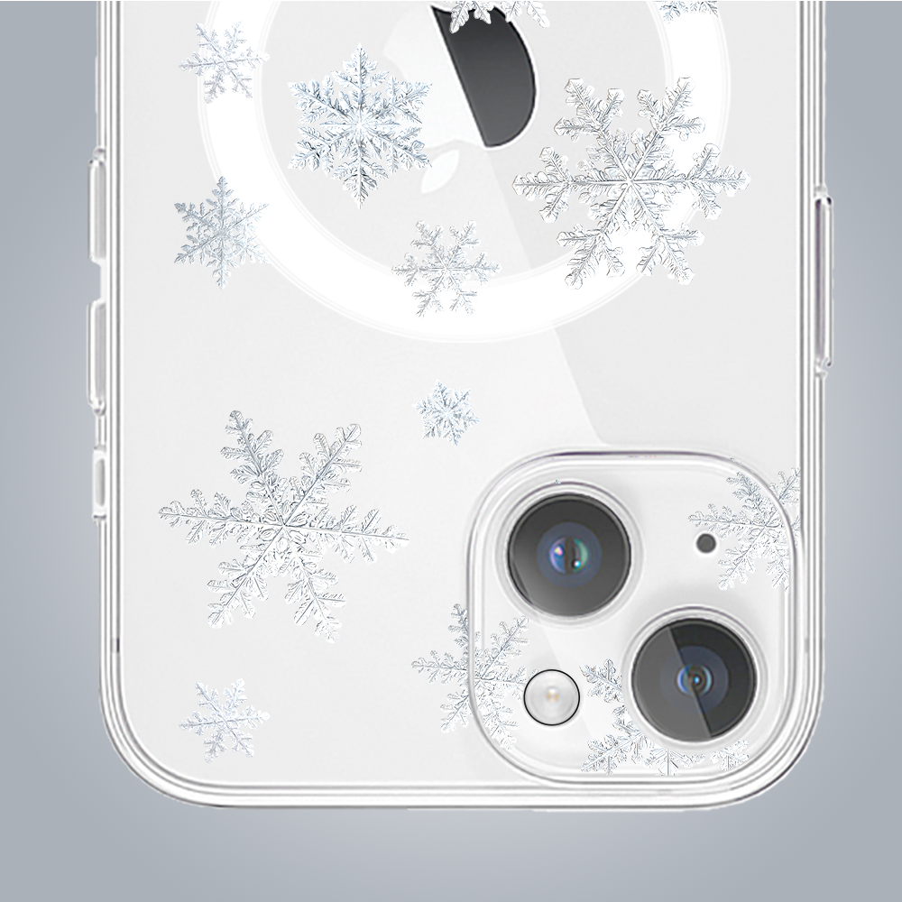 • Etui do iPhone 14 z MagSafe, delikatne płatki śniegu, przeźroczyste