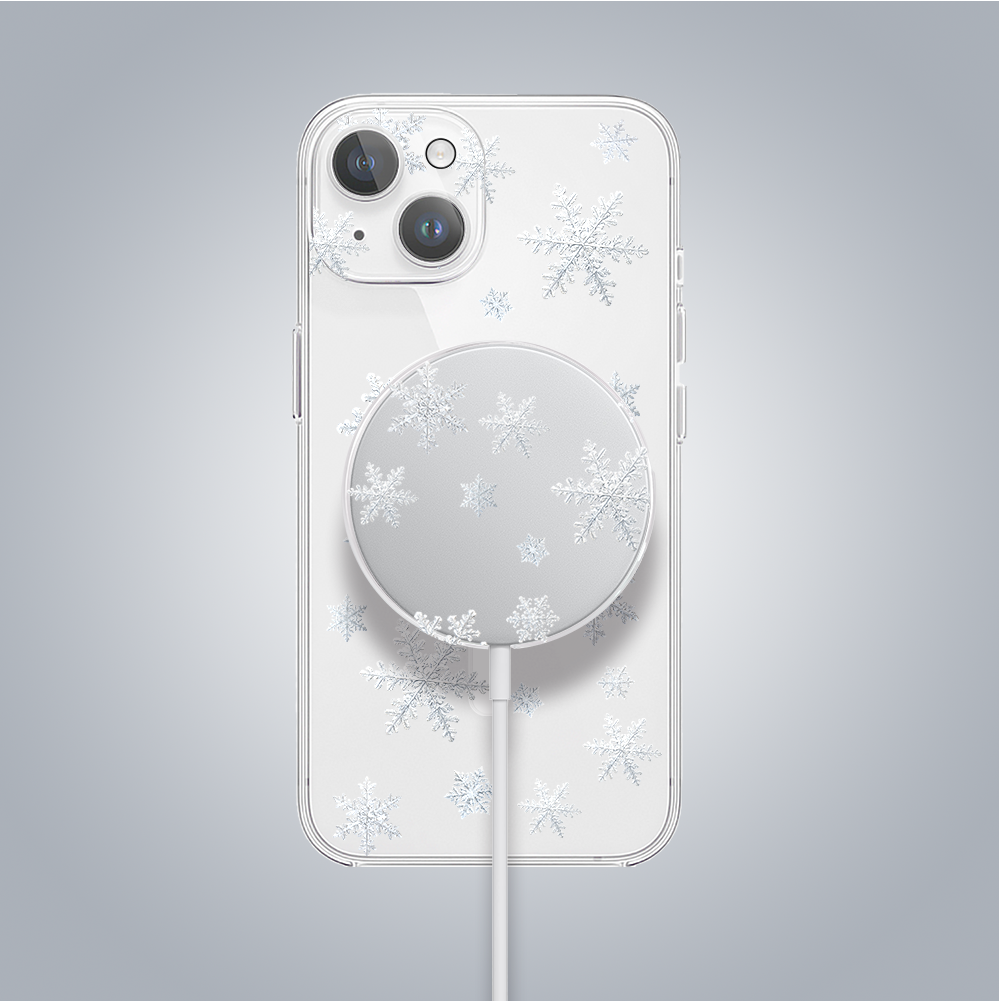 • Etui na ładowarkę MagSafe antypoślizgowe, transparentne z wzorem delikatne płatki śniegu